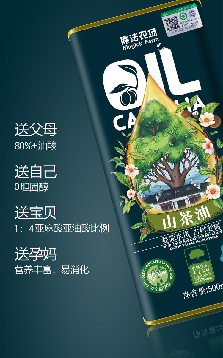 魔法农场有机山茶油500ML马口铁*2礼盒