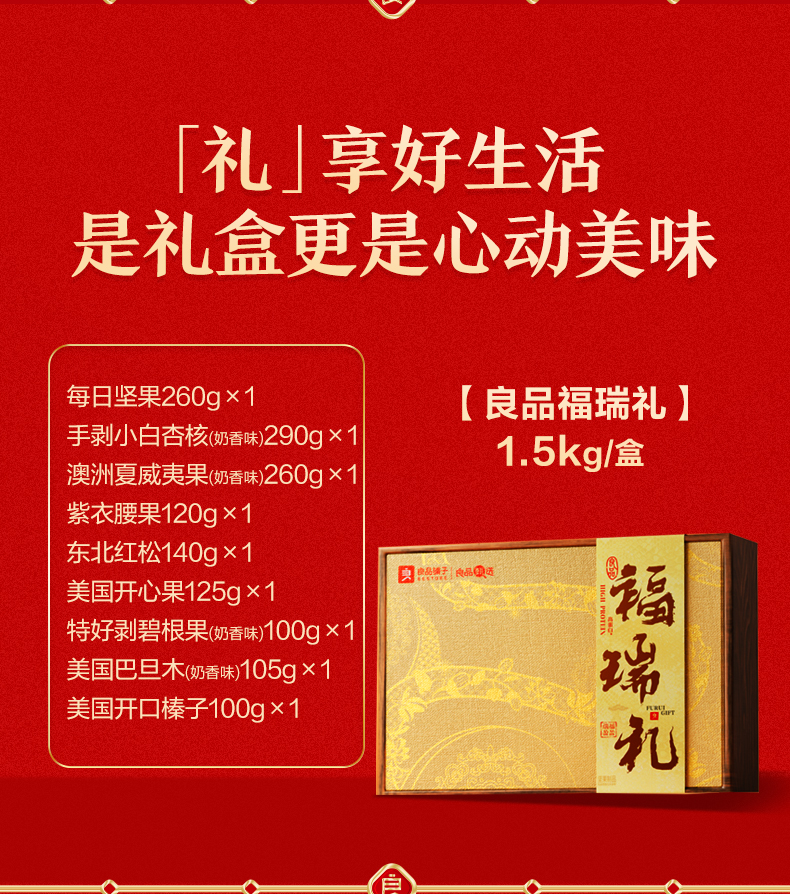 【良品铺子】高蛋白福瑞礼 礼盒1500g