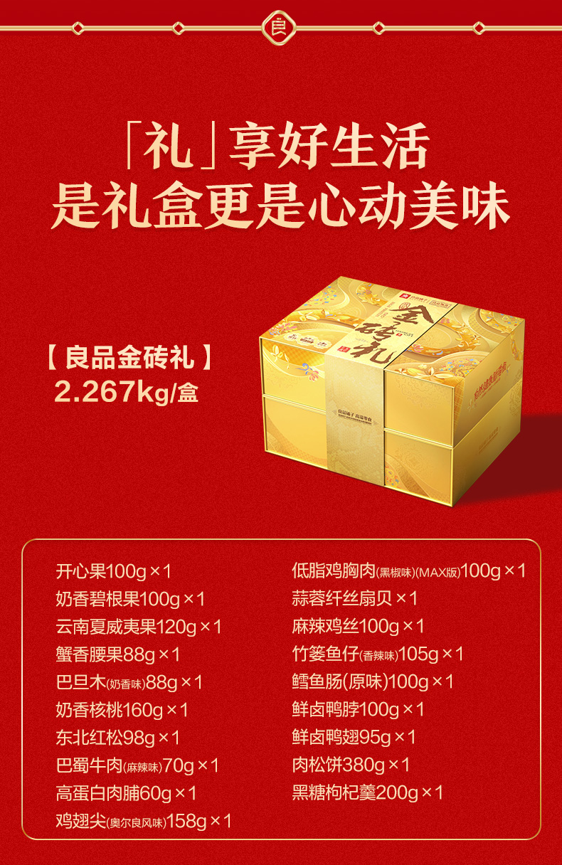 【良品铺子】高蛋白金砖礼 礼盒2267g