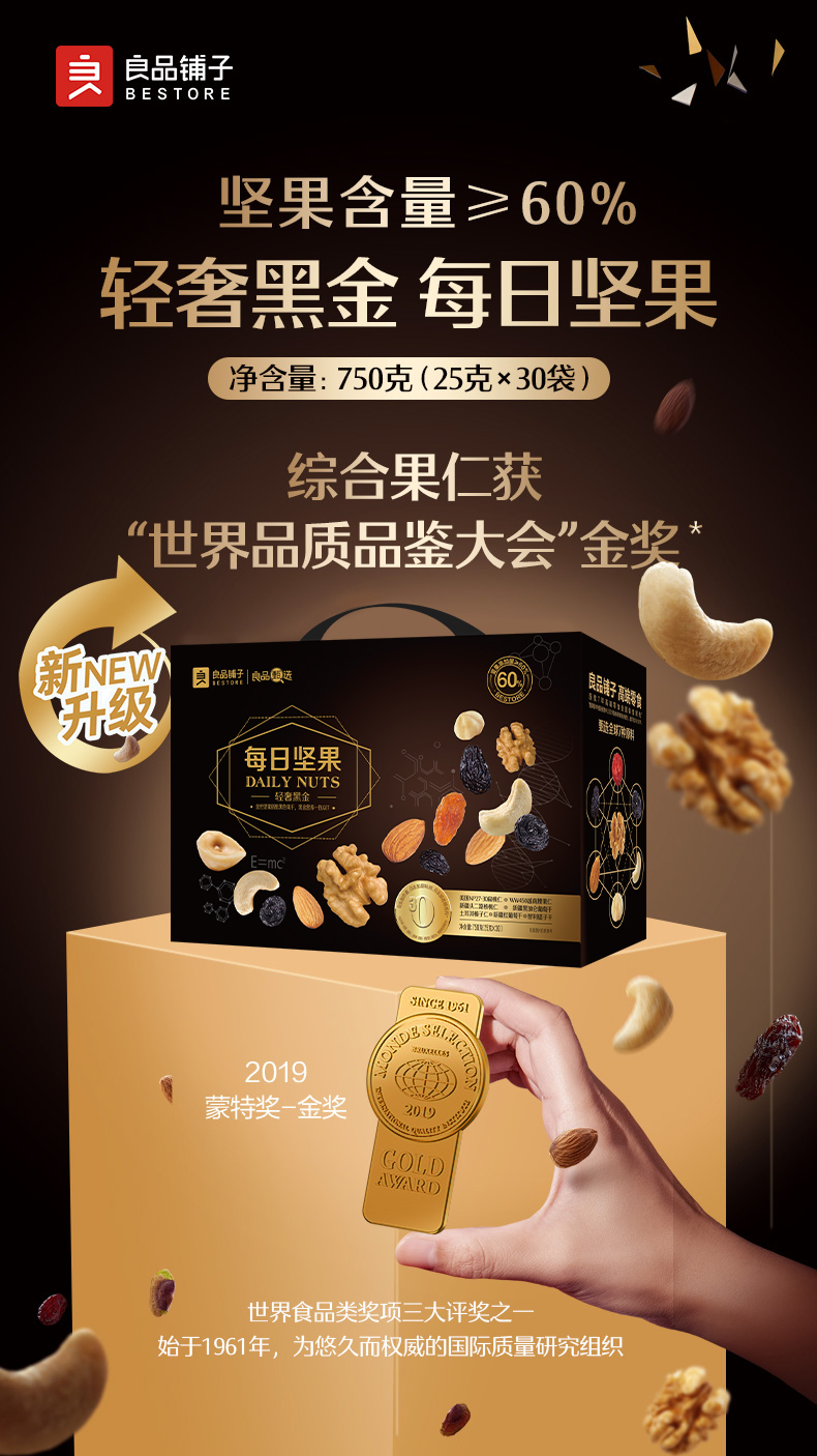 【良品铺子】轻奢黑金每日坚果礼盒750g