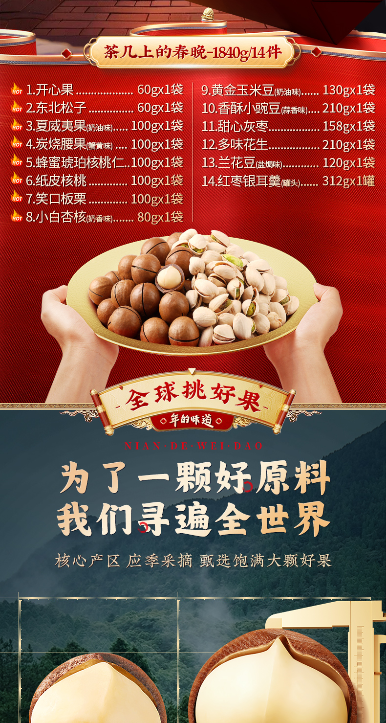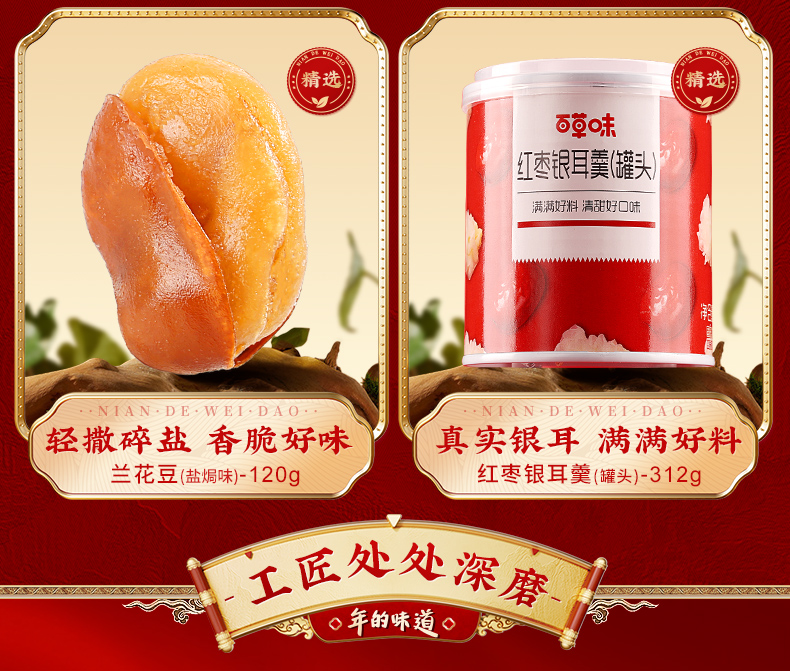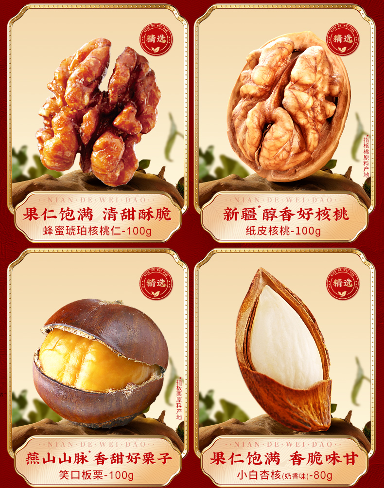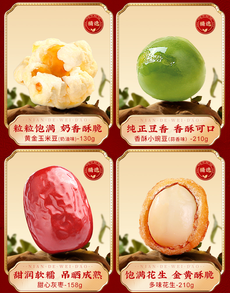 【百草味】开心果 60g/【百草味】东北松子 60g/【百草味】夏威夷果(奶油味) 100g/【百草味】炭烧腰果(蟹黄味)100g/【百草味】蜂蜜琥珀核桃仁 100g/【百草味】纸皮核桃 100g/【百草味】笑口板栗 100g/【百草味】小白杏核(奶香味)80g/【百草味】黄金玉米豆(奶油味)130g/【百草味】香酥小豌豆(蒜香味) 210g/【百草味】甜心灰枣 158g/【百草味】多味花生 210g/【百草味】兰花豆(盐焗味)120g/【百草味】红枣银耳羹 312g