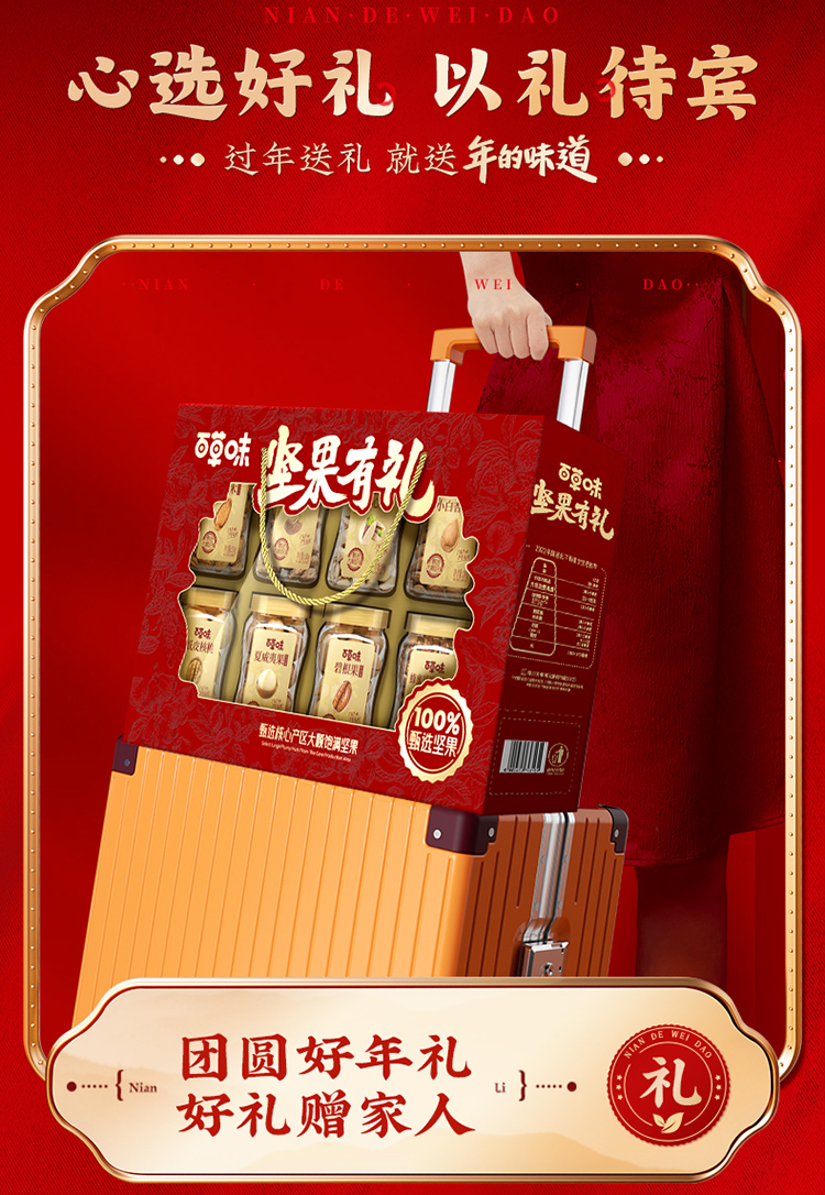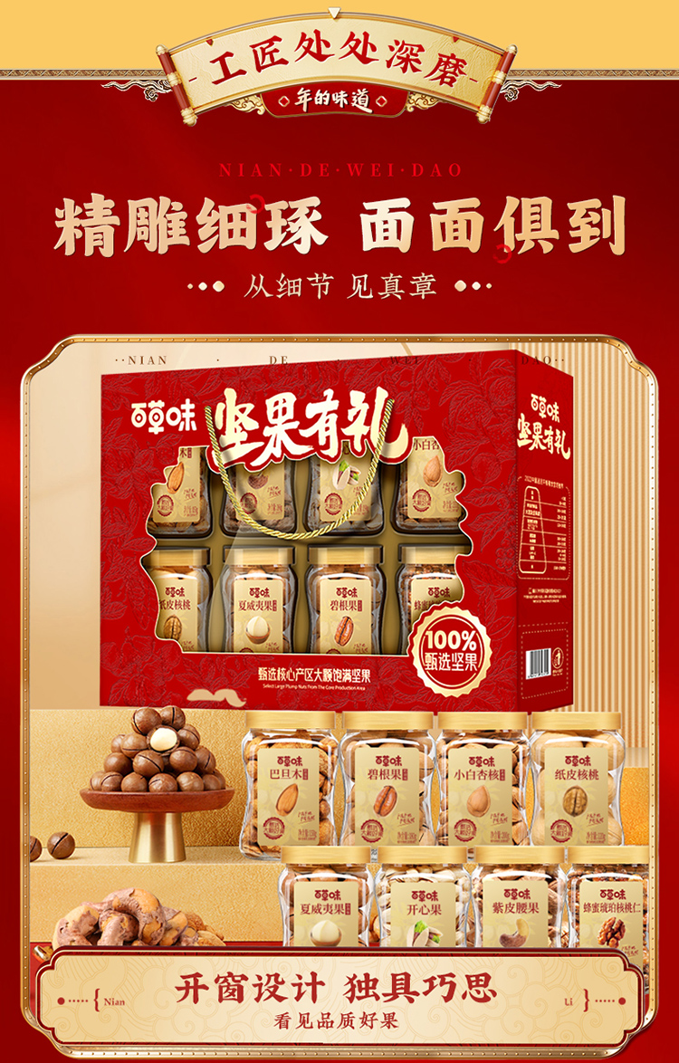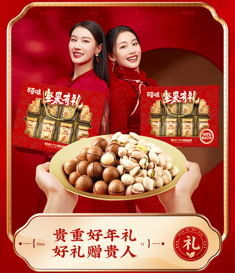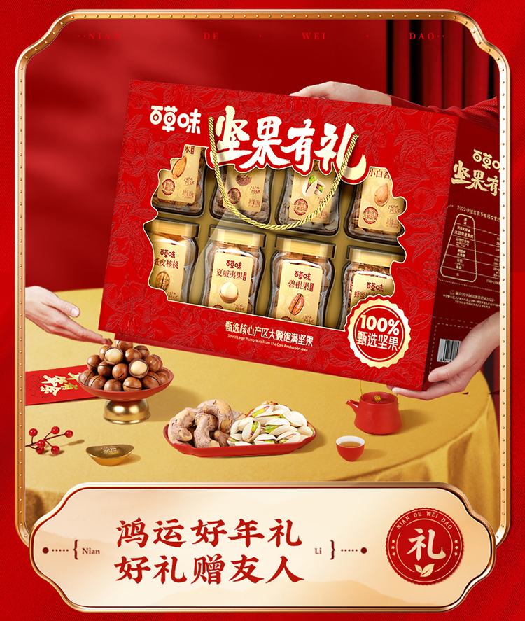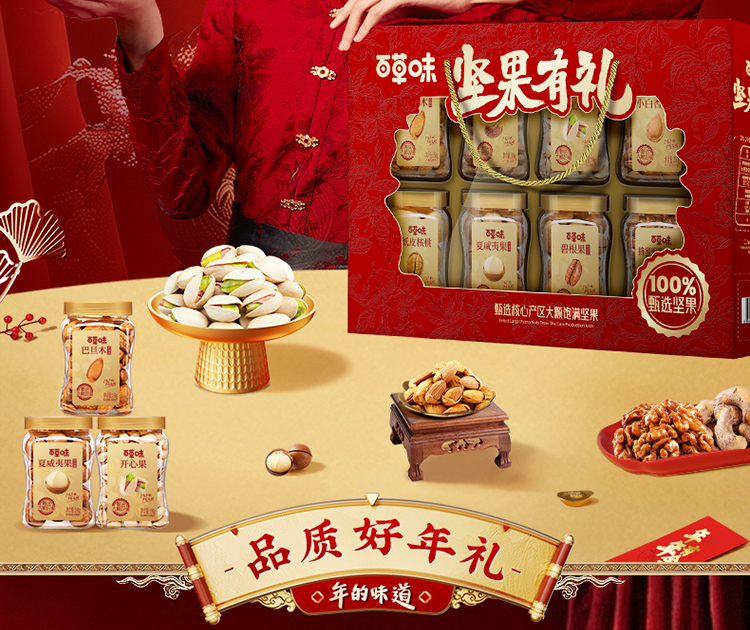 【百草味】罐装坚果礼盒1420g(坚果有礼-开窗)尊享礼