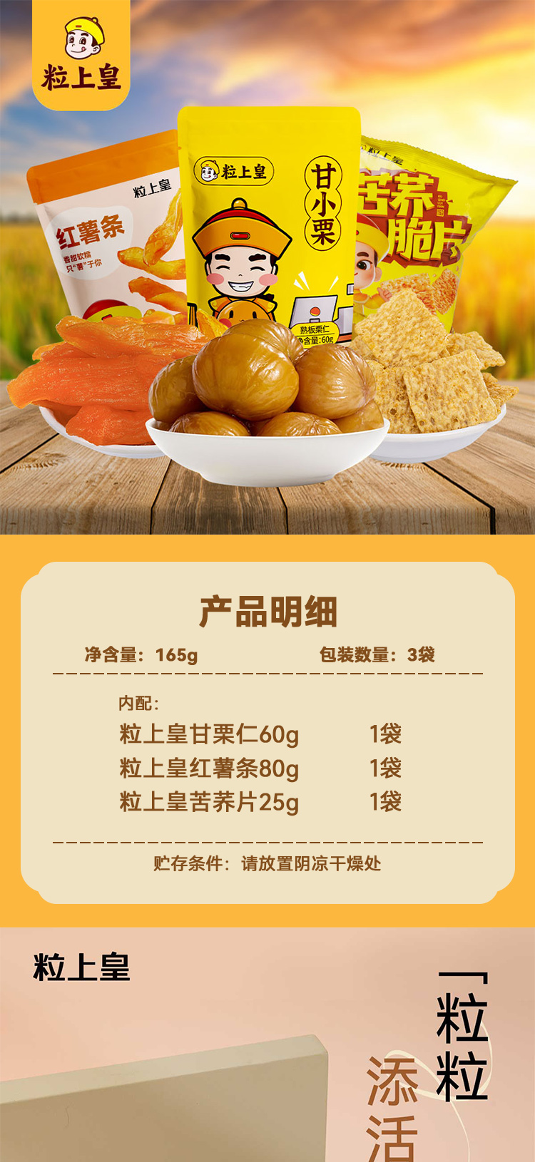 粒上皇甘栗仁60g*1+粒上皇红薯条80g*1+粒上皇苦荞片25g*1
