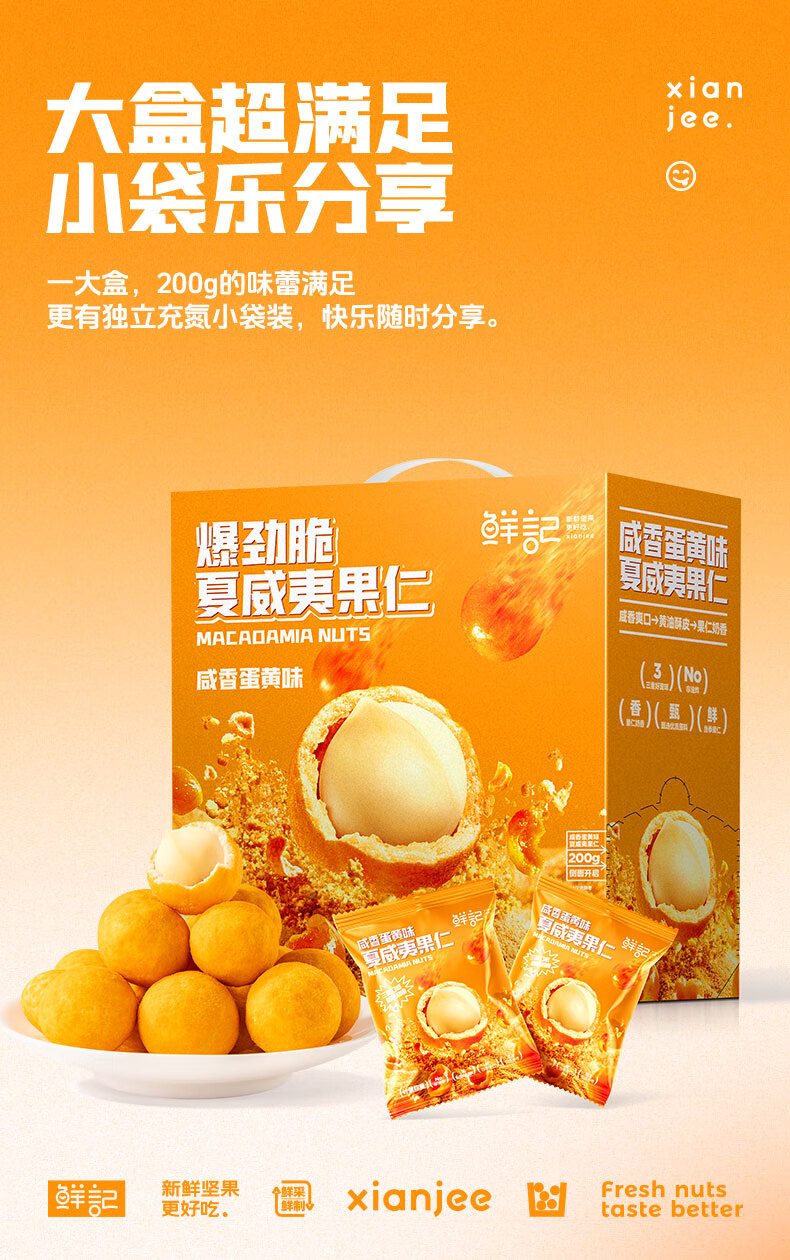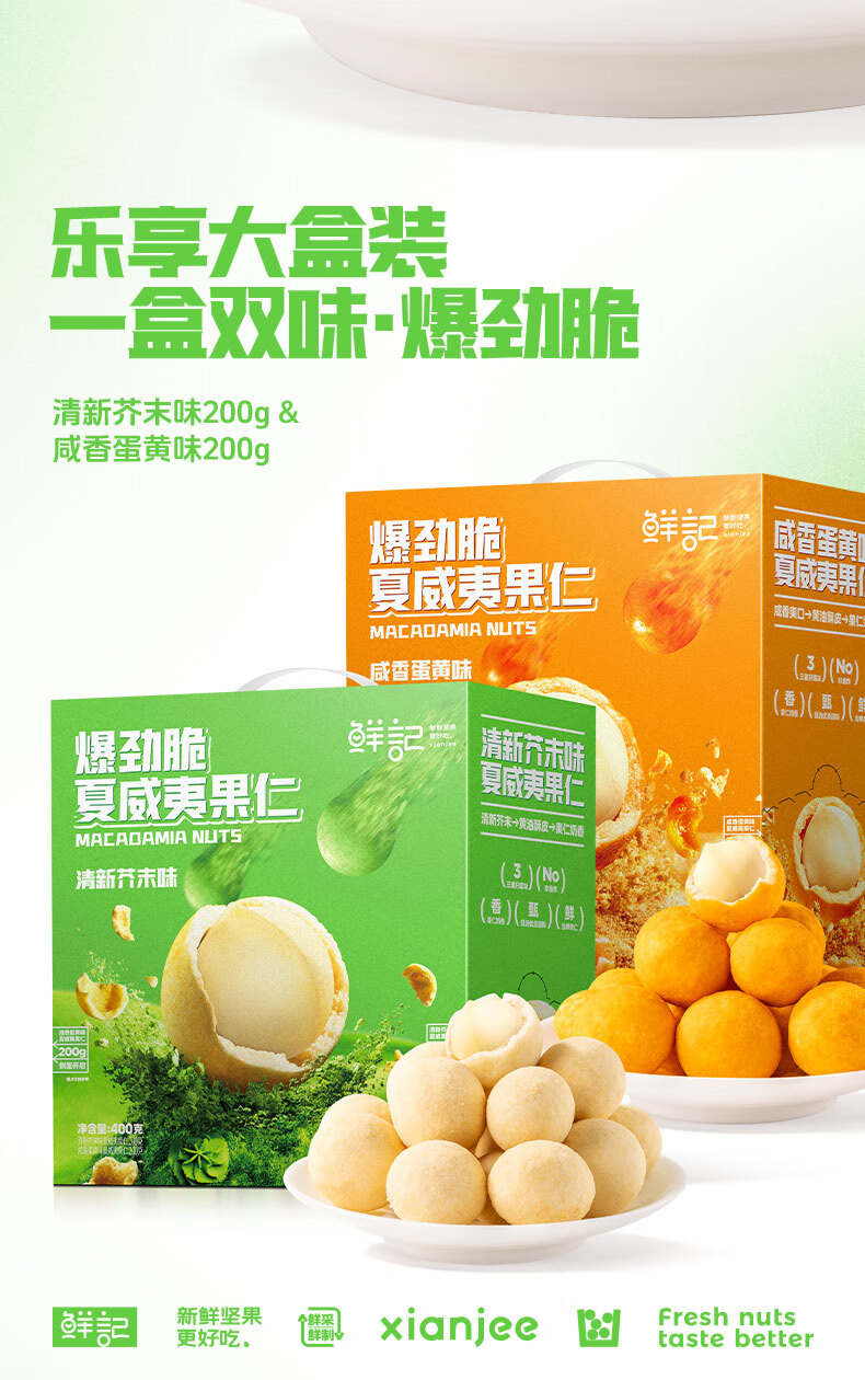 鲜记 劲爆脆夏威夷果仁400g