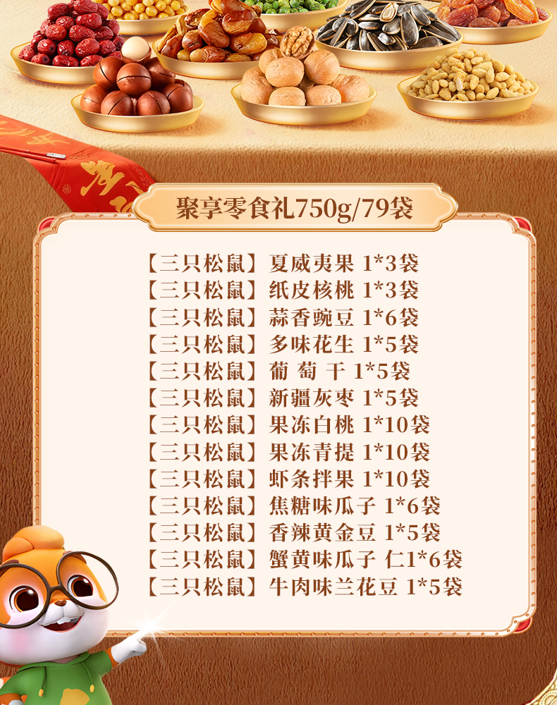 • 【三只松鼠】 聚享零食礼 750g (79袋)