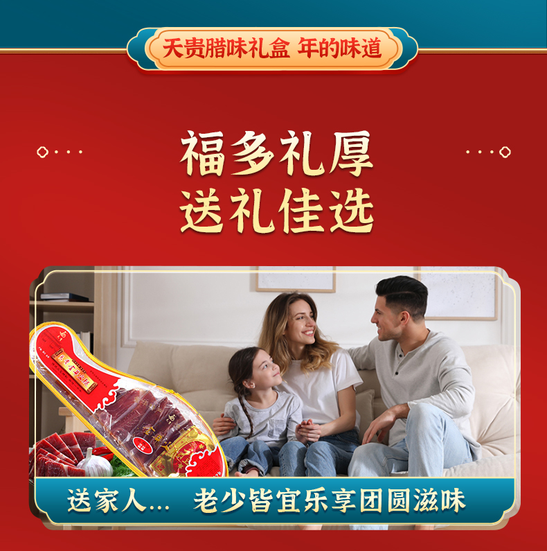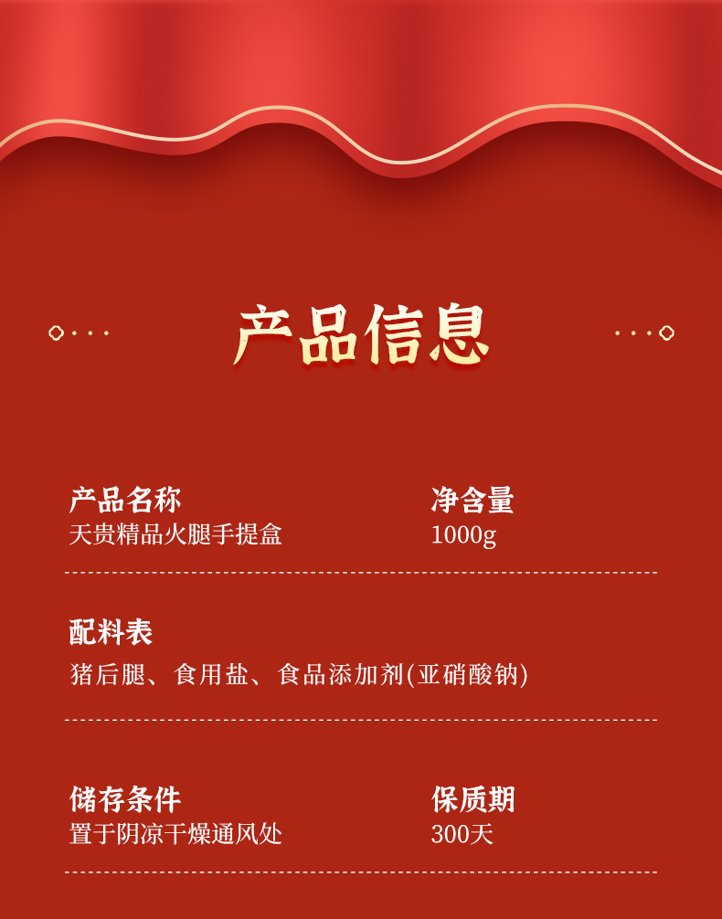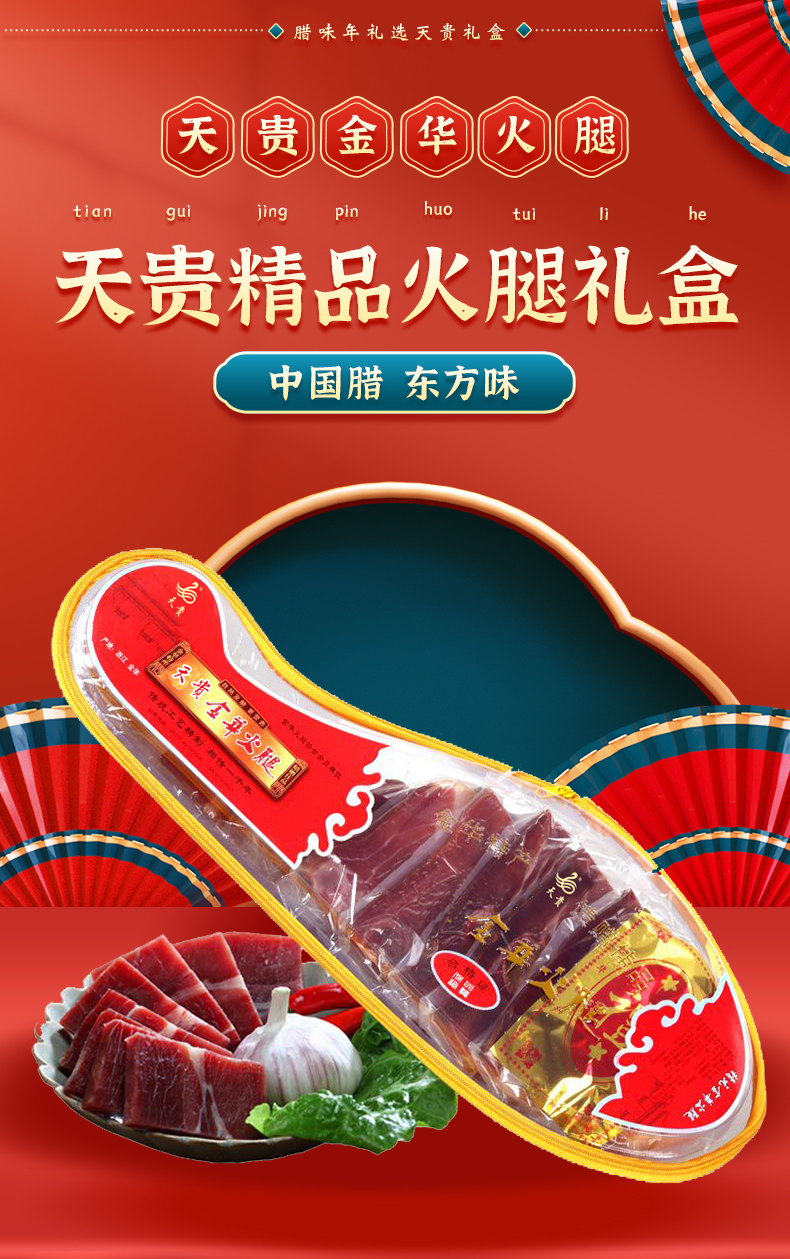 天贵腊味精品火腿塑盒 礼盒 1000g