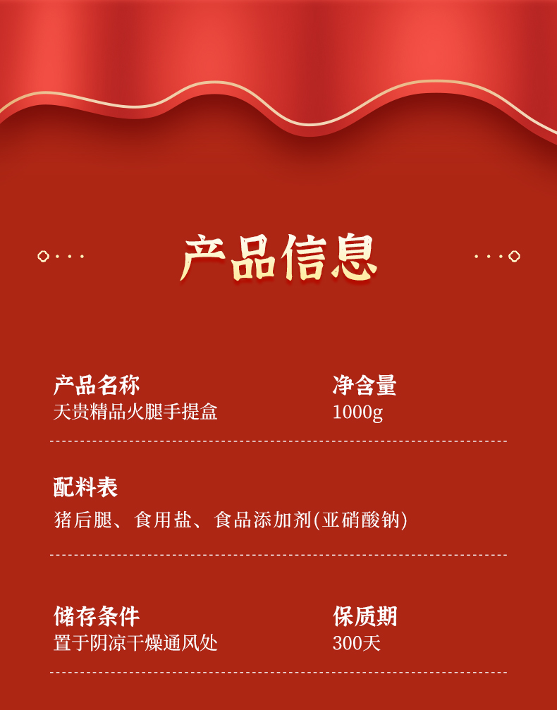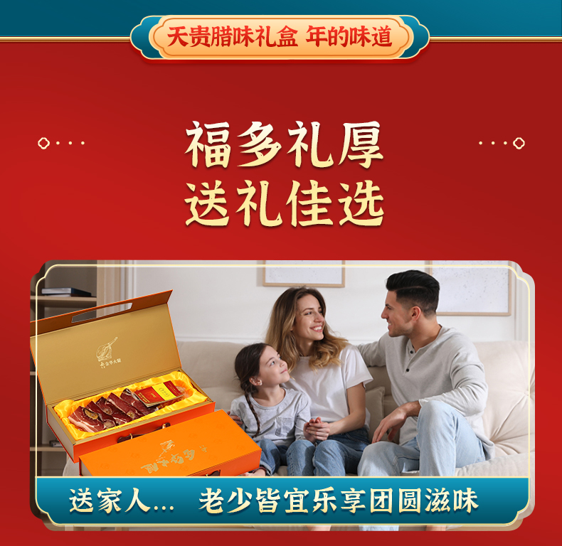 天贵腊味精品火腿手提盒 礼盒 1000g