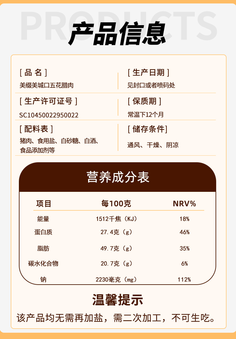 美缀美五花腊肉400g 美缀美国风系列