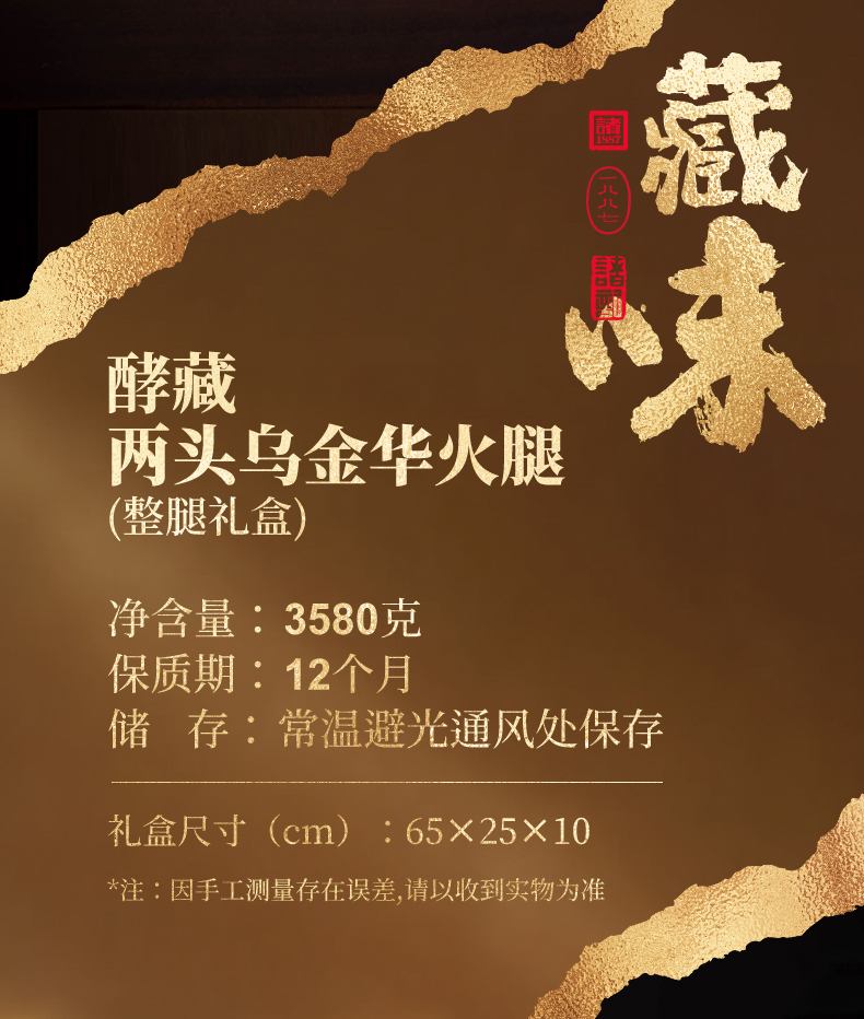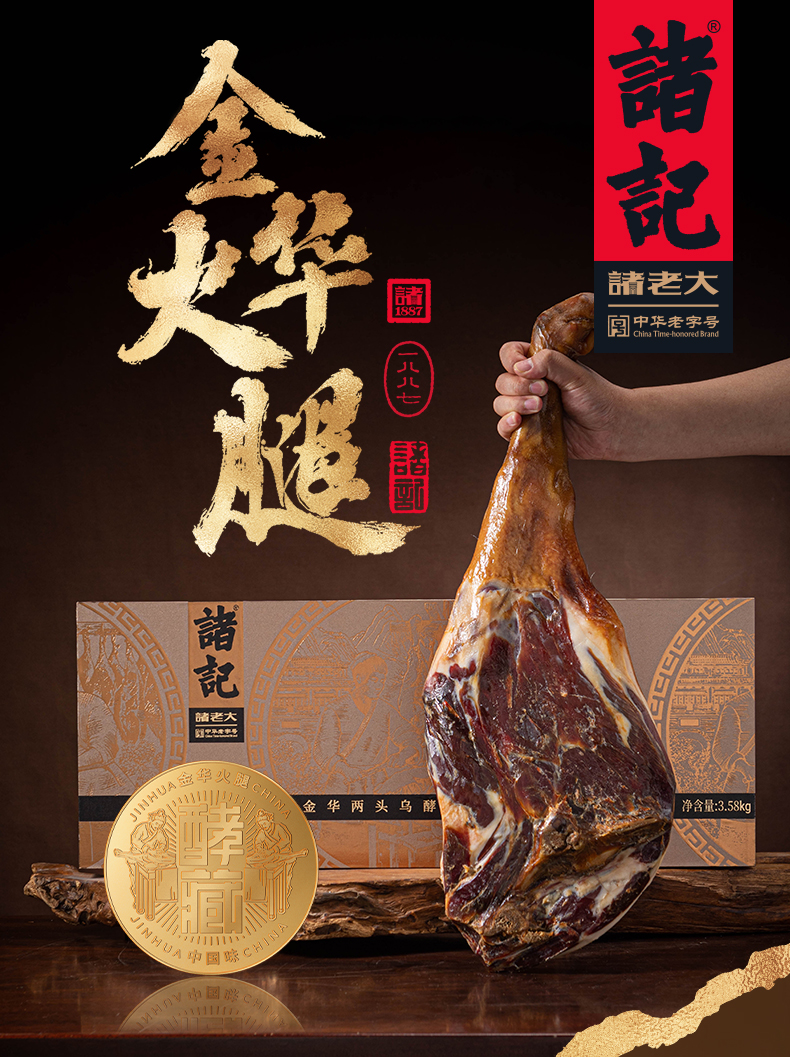 诸记酵藏两头乌金华火腿整腿礼盒3.58kg