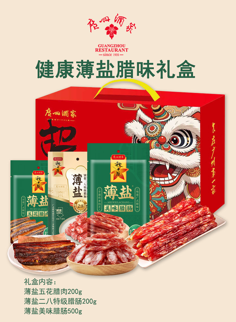 【广州酒家】 健康薄盐 腊味礼盒900g