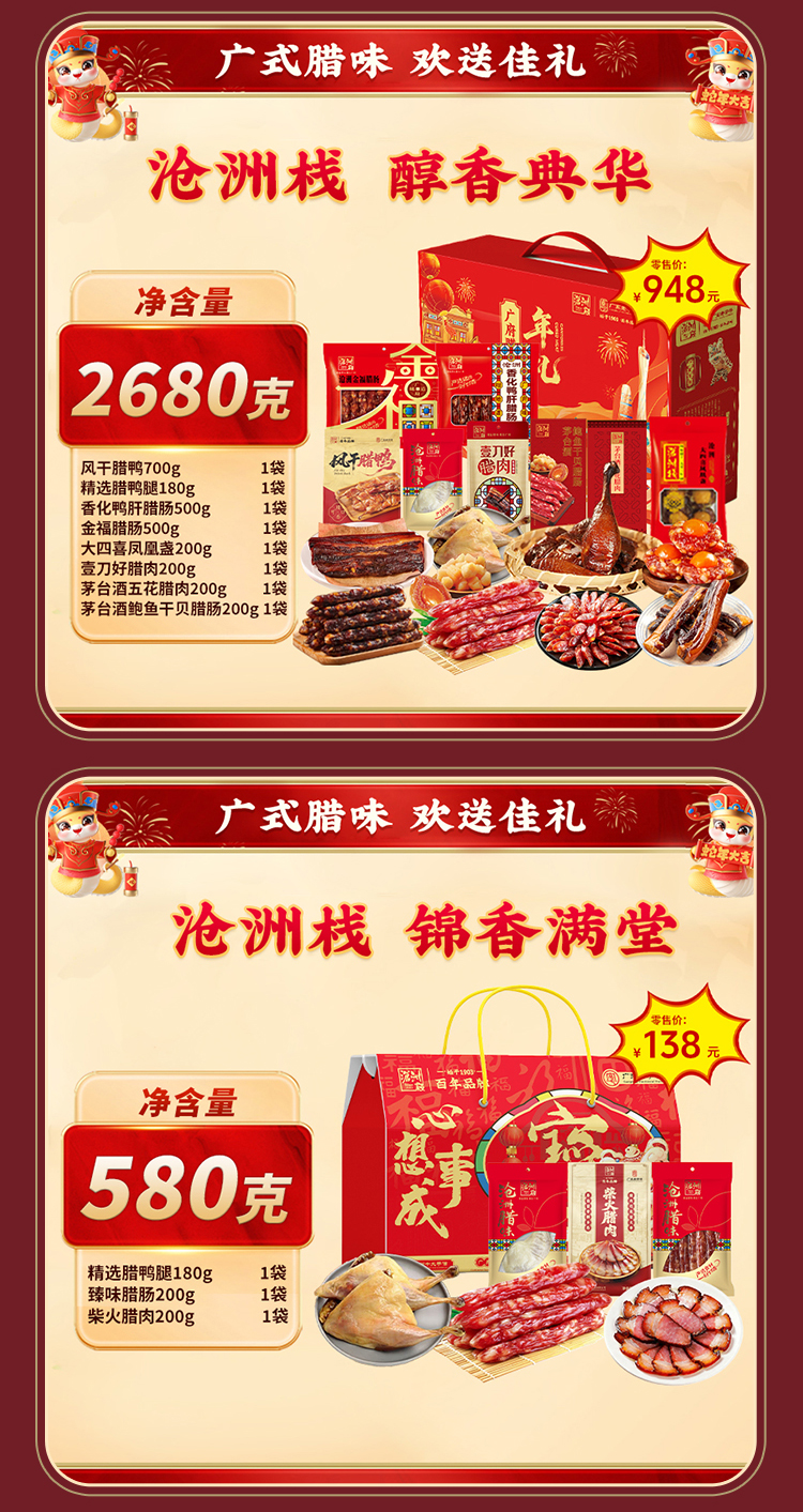 【沧洲栈】 团圆佳礼 腊味礼盒1825g