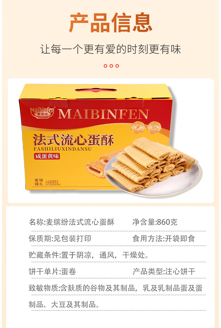 麦缤纷法式流心蛋酥 (咸蛋黄味)860g