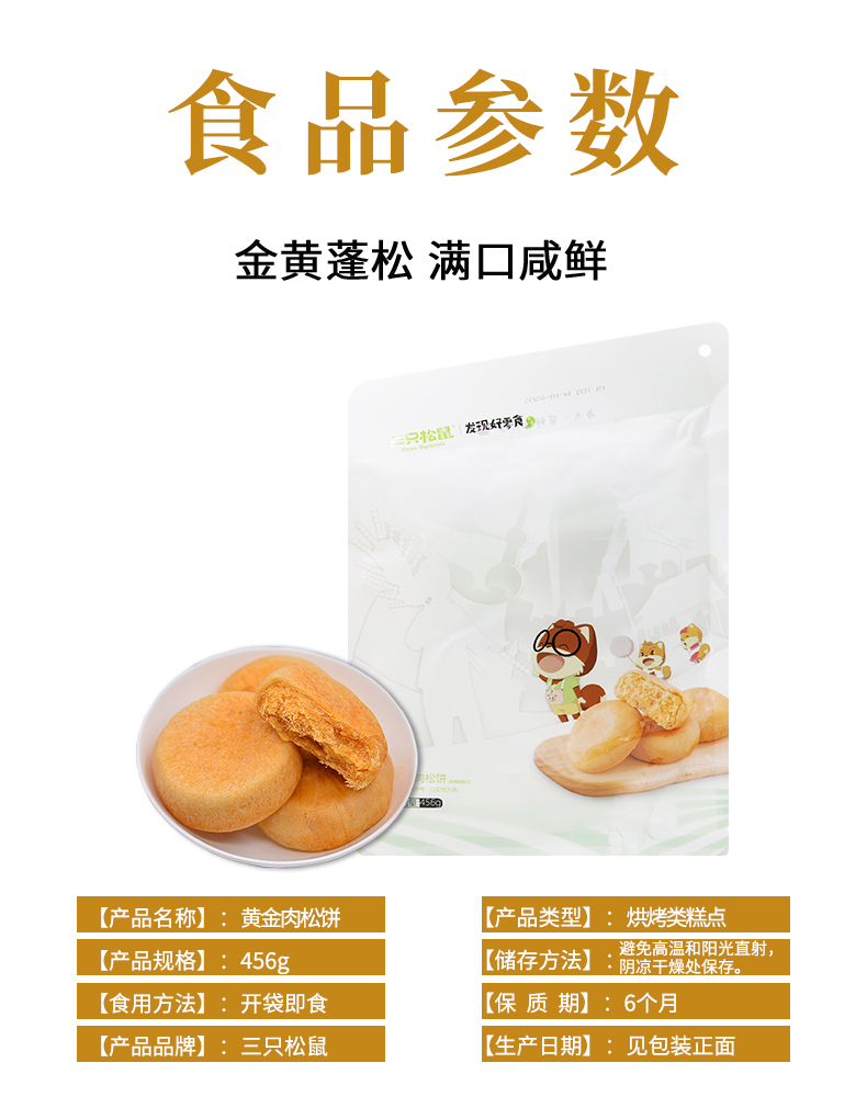 三只松鼠原味肉松饼456g