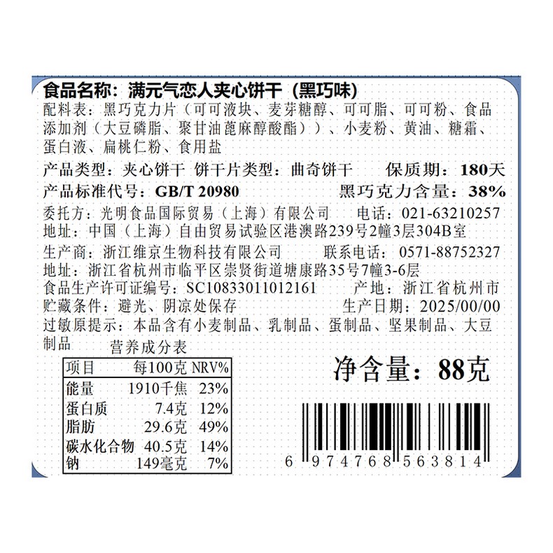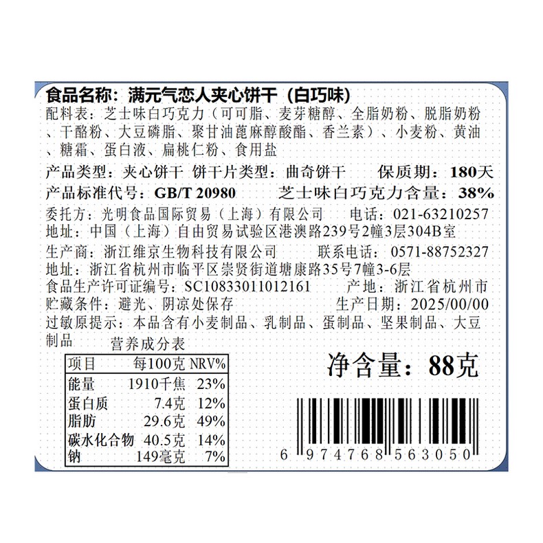 光明满元气 芝士恋人88g