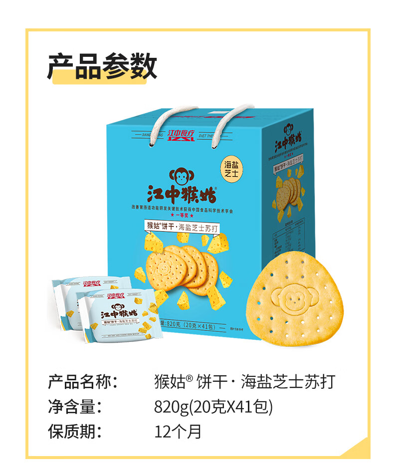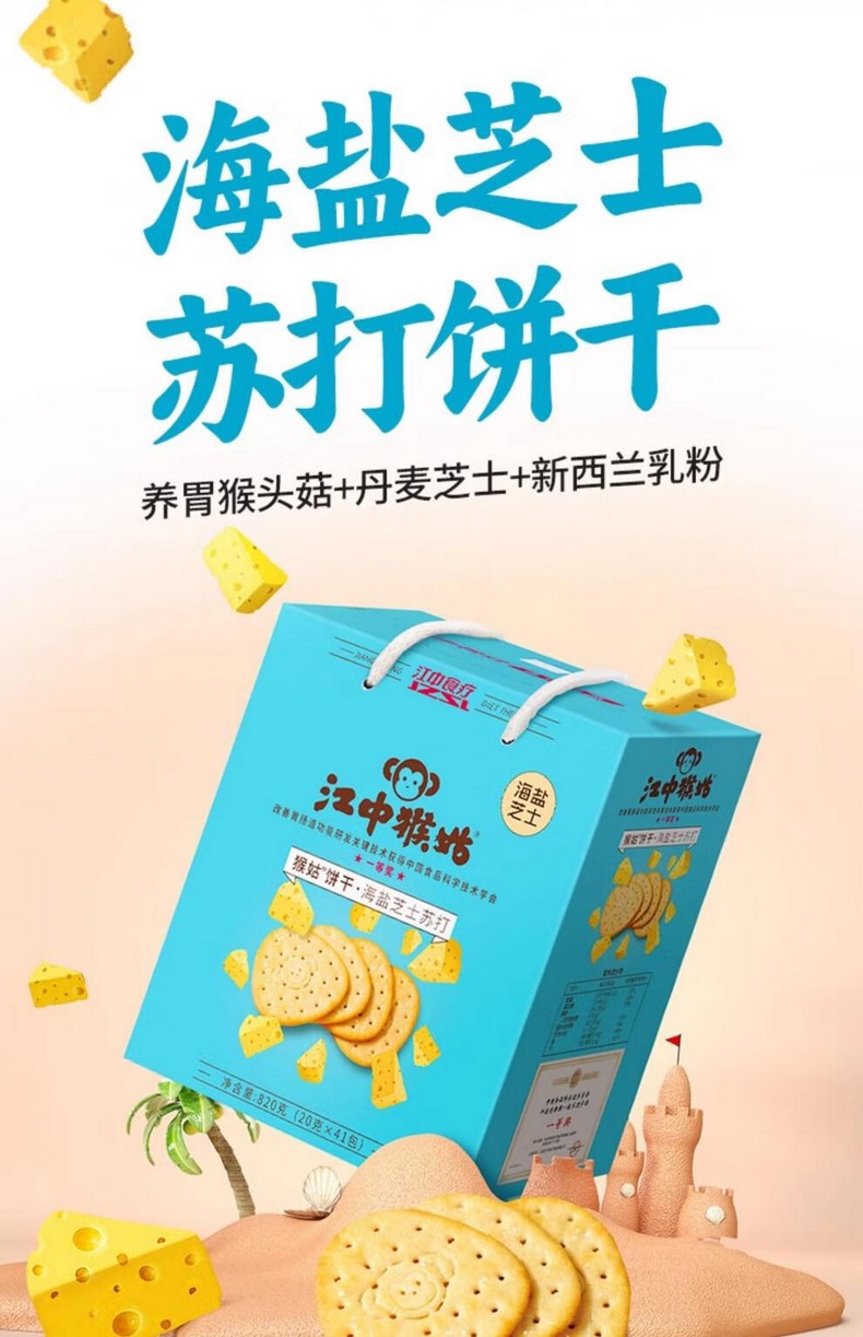 江中猴姑海盐芝士苏打 猴姑饼干820g/盒