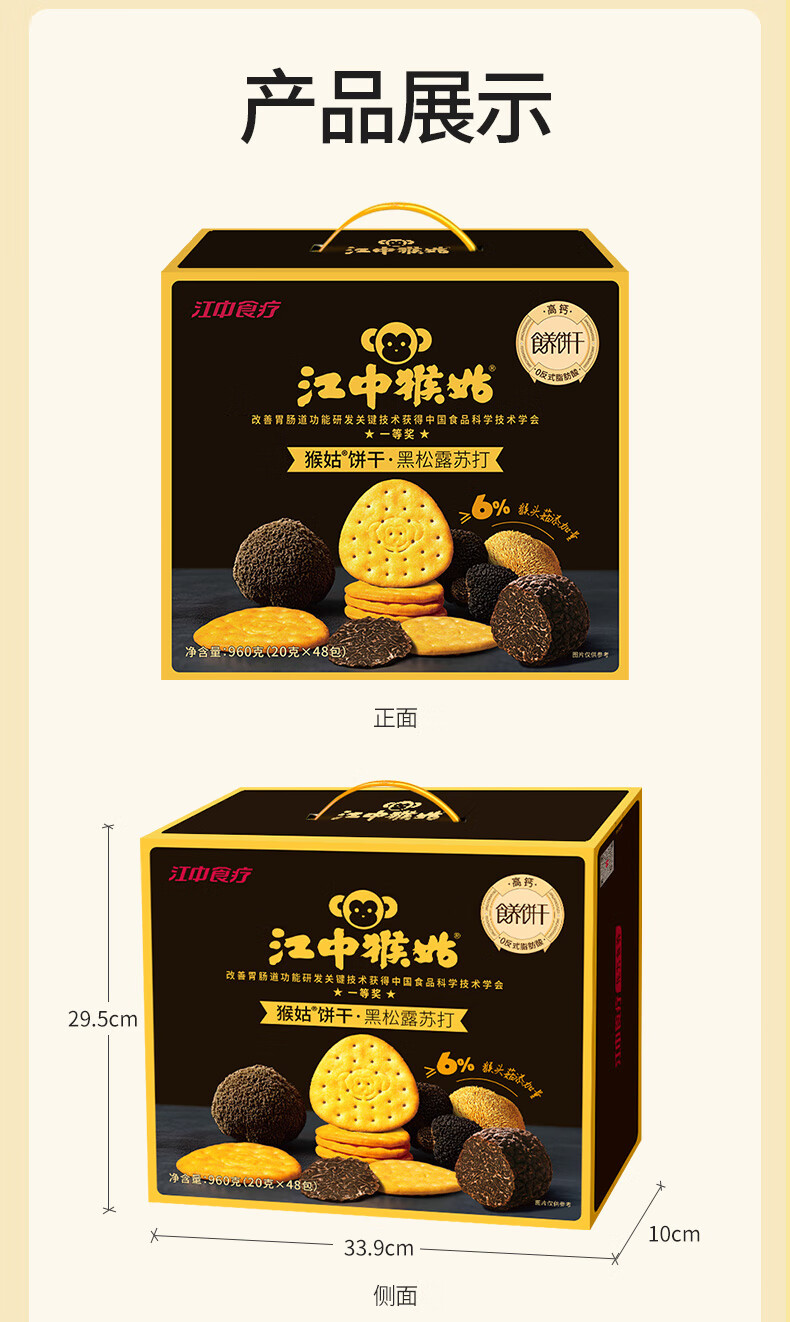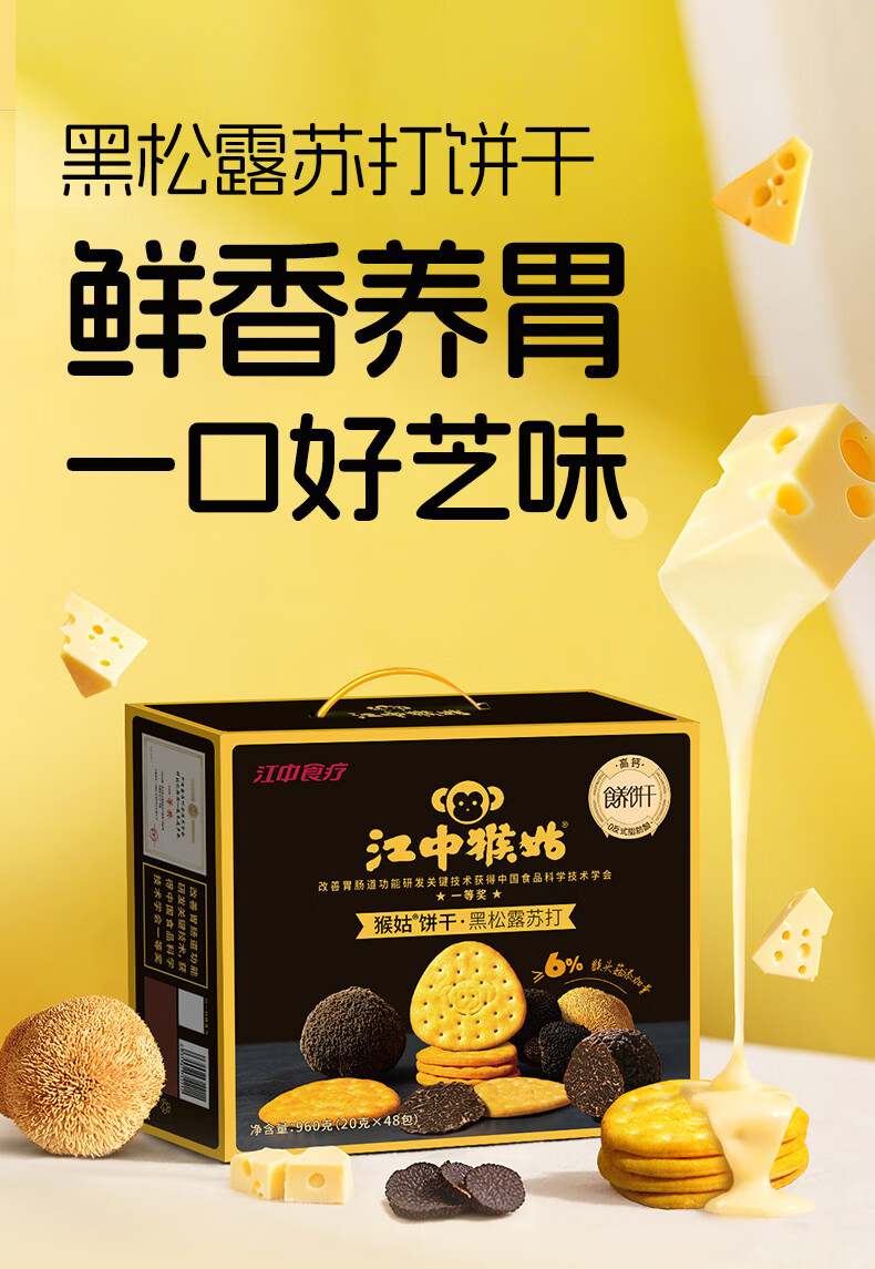江中猴姑 黑松露苏打 猴姑饼干960g礼盒款