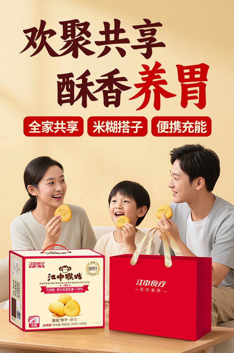 江中猴姑 有糖酥性饼干20天(礼盒款)960g礼盒装