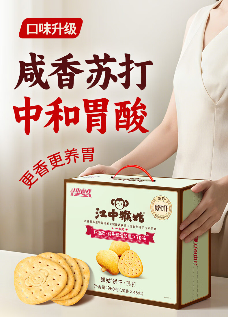 江中猴姑苏打饼干20天(礼盒款) -(三角形、猴头菇6%)原味苏打960g-礼盒款