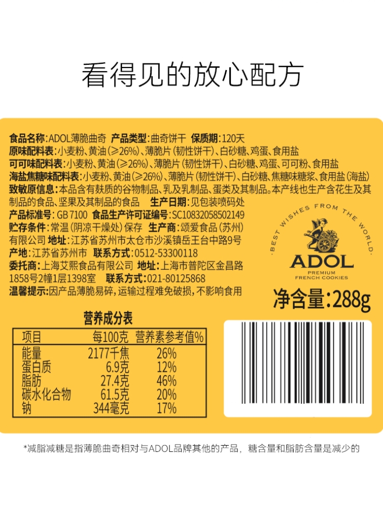 ADOL 薄脆曲奇288g+珍妮原味180g