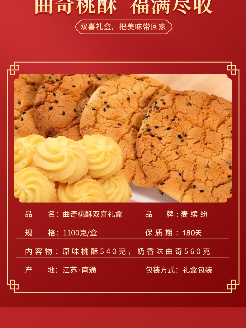 麦缤纷 恭喜发财曲奇桃酥双喜礼盒1.1kg