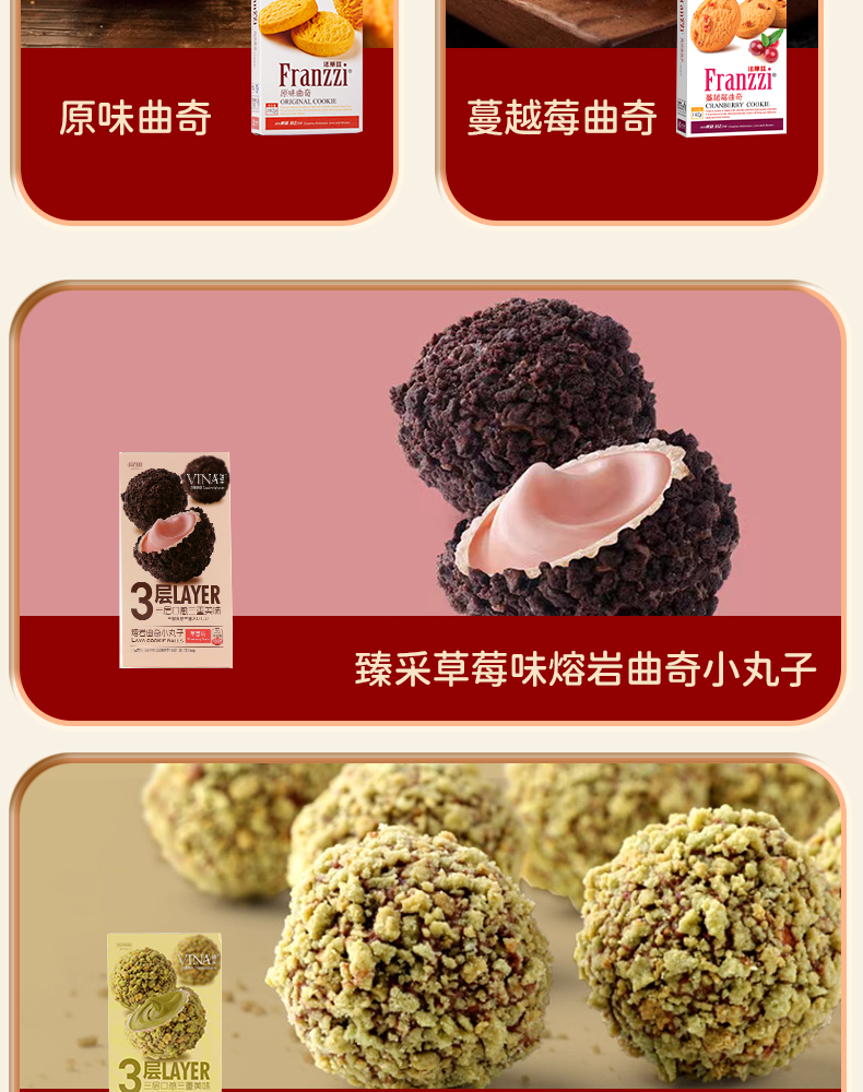 【法丽兹】臻采草莓味熔岩曲奇小丸子100g*1盒