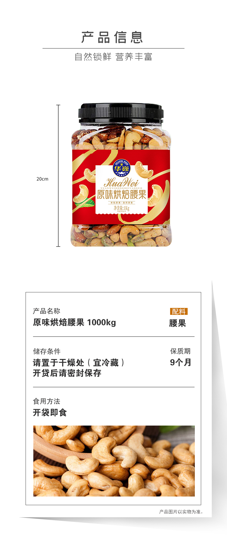 华巍实惠装 原味烘焙腰果 1000g/罐