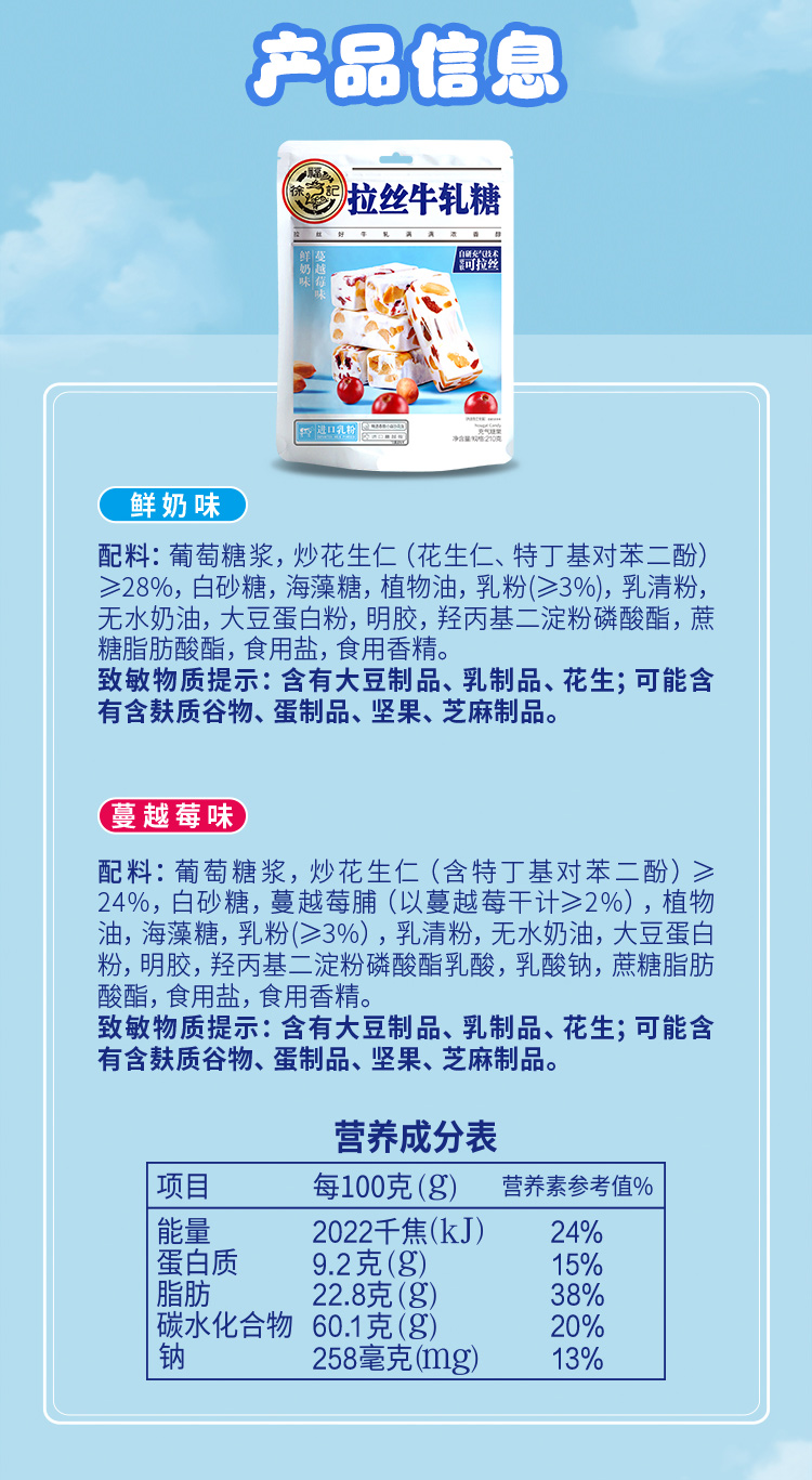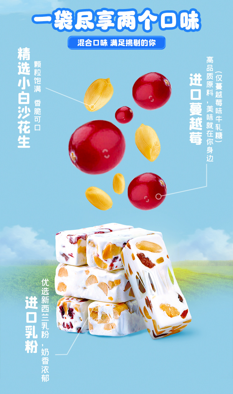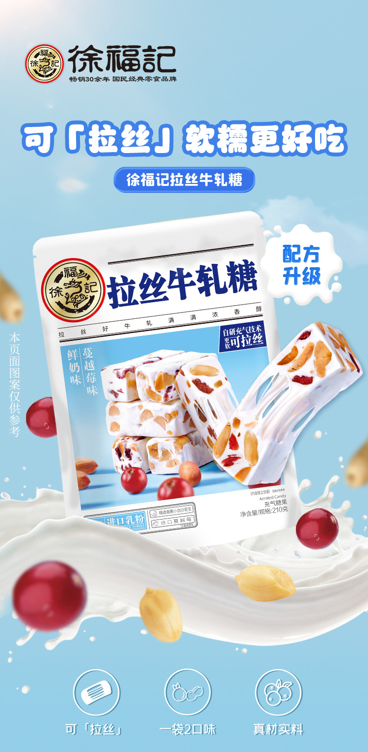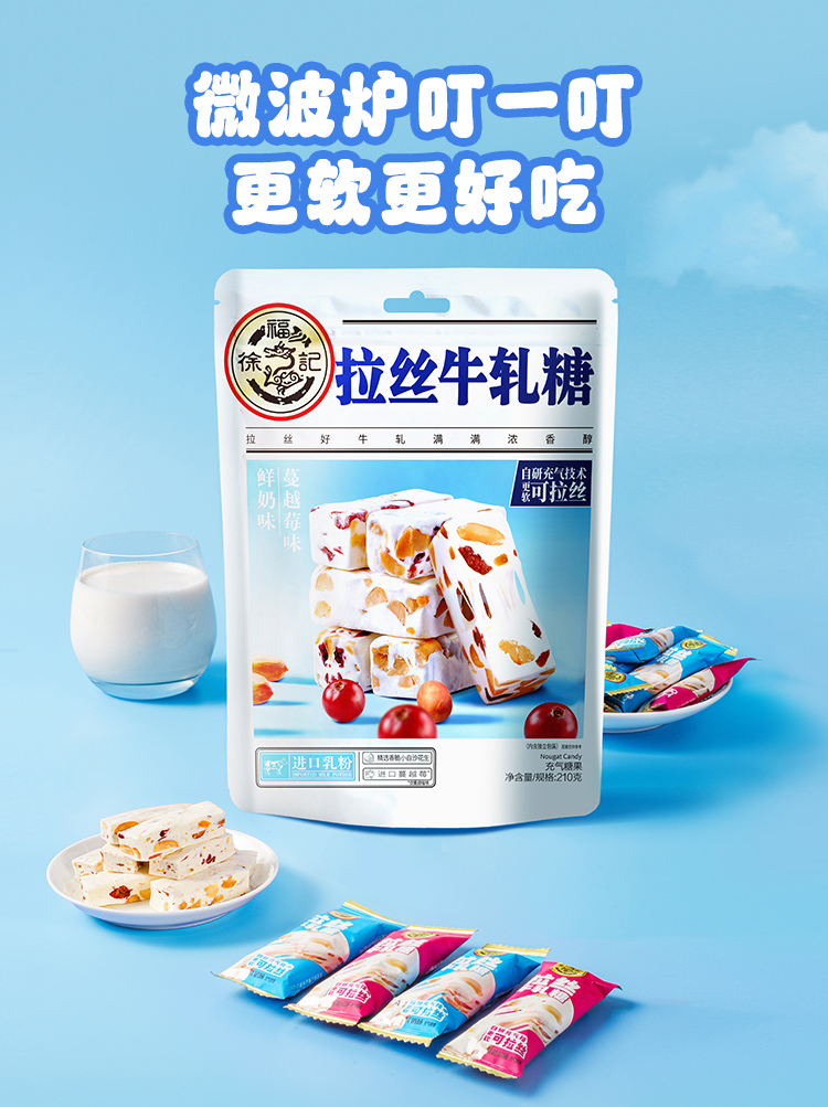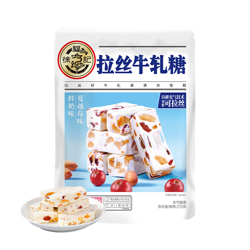 徐福记牛轧糖鲜奶蔓越莓味袋装210g