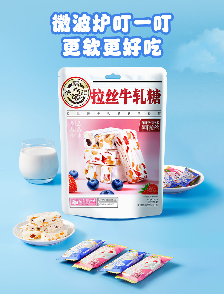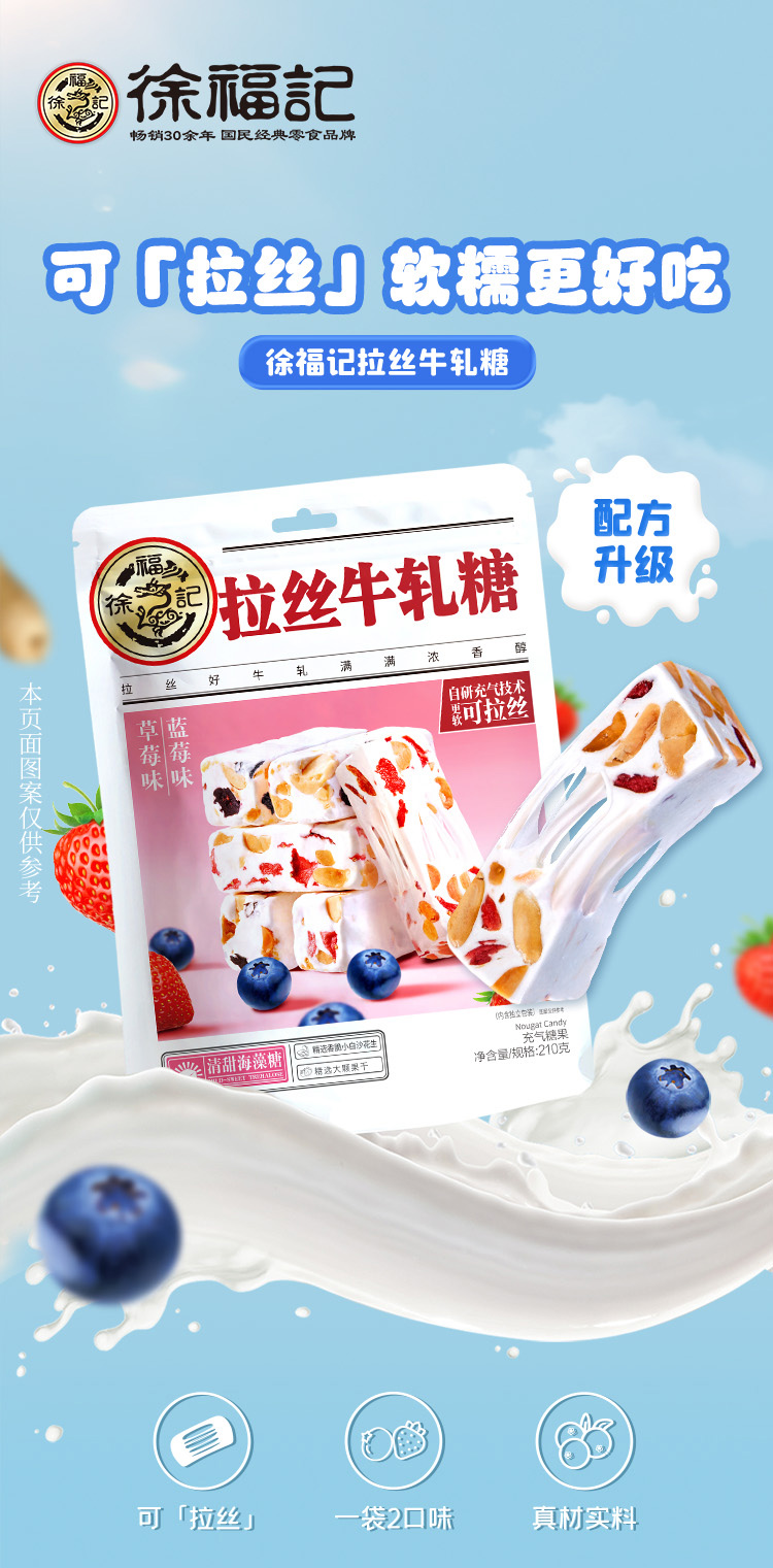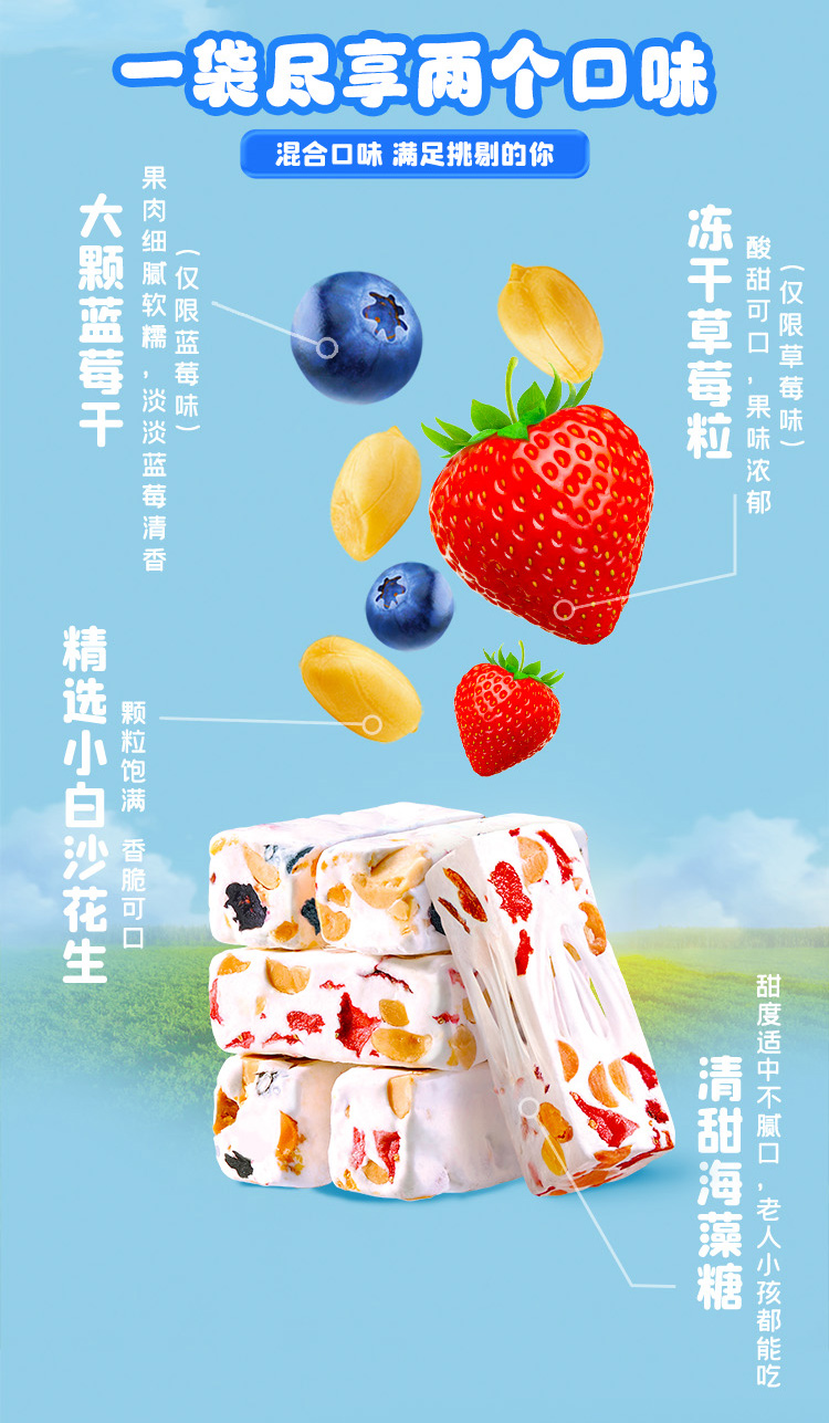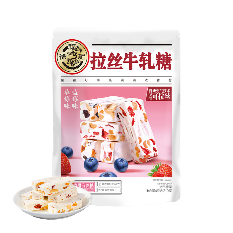 徐福记牛轧糖蓝莓草莓味袋装210g