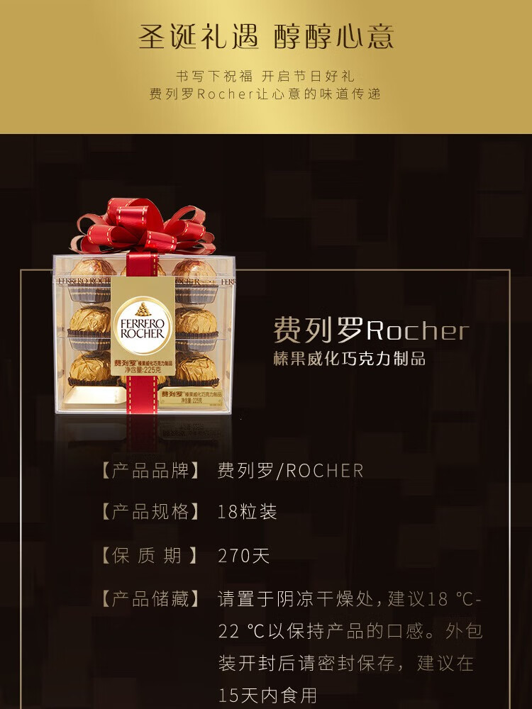 费列罗榛果威化巧克力18粒方形礼盒装音乐盲盒组合