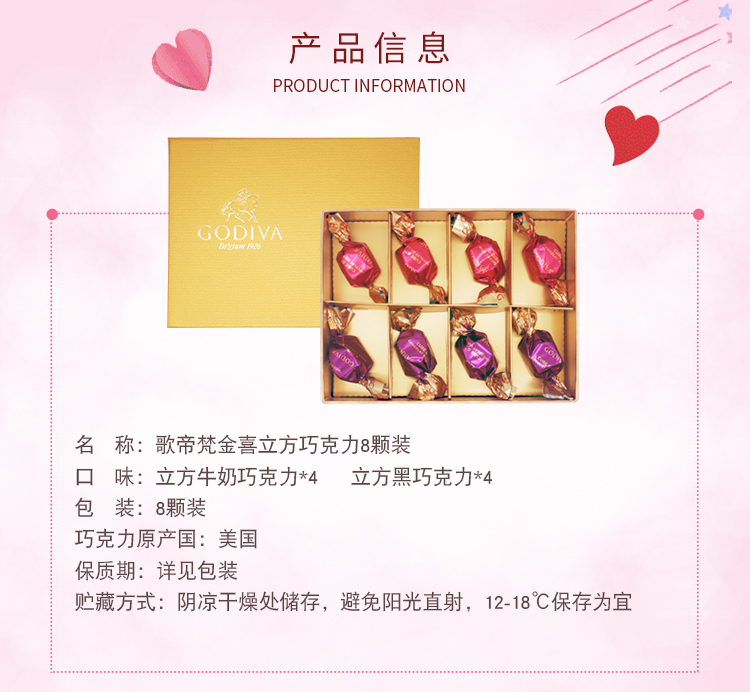 歌帝梵金喜立方巧克力礼盒8颗装60g