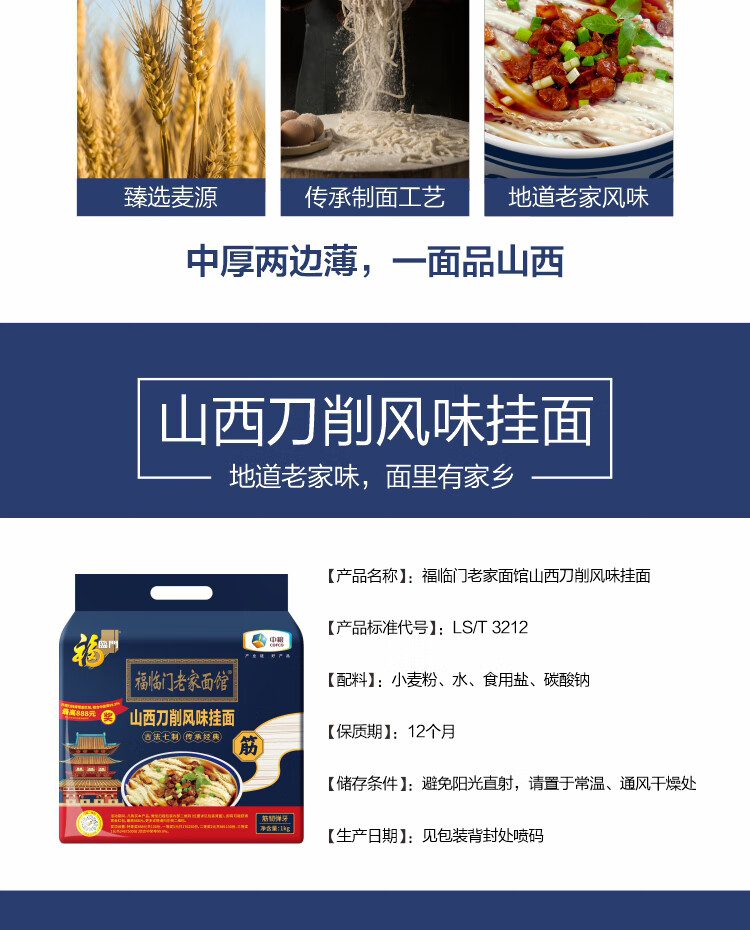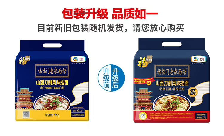 中粮福临门老家面馆山西刀削风味挂面1kg(整箱起订)