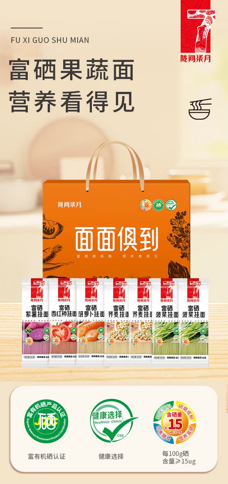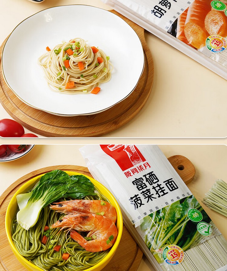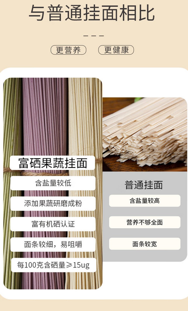 富硒胡萝卜挂面560g、富硒西红柿挂面560g、富硒菠菜挂面560g、富硒荞麦挂面560g、富硒紫薯挂面560g