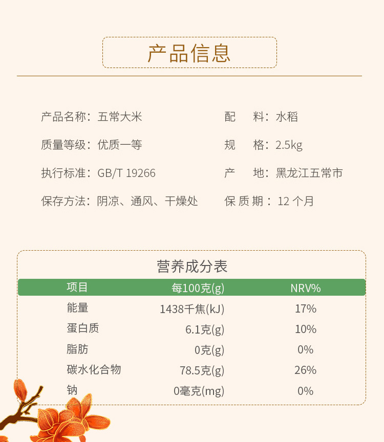乐养优品五常大米财运亨通2.5KG(欧盟有机认证)