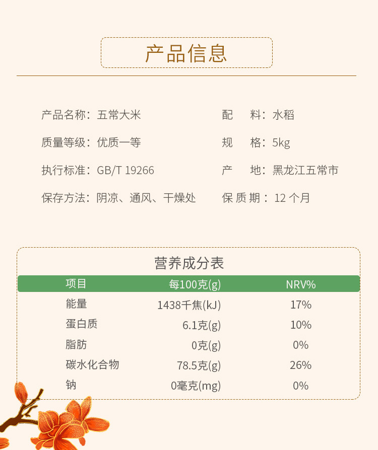 乐养优品五常大米金玉满堂5KG(中国有机认证)