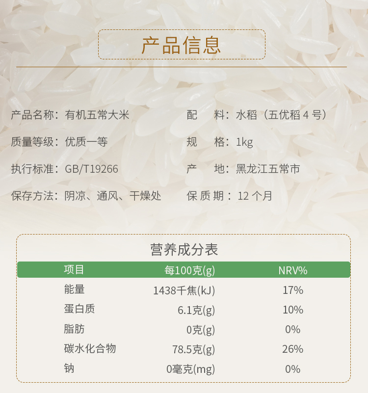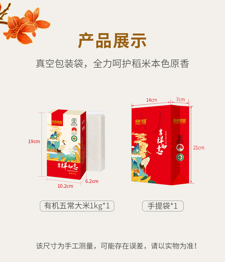 乐养优品有机五常大米礼盒(吉祥如意)1KG