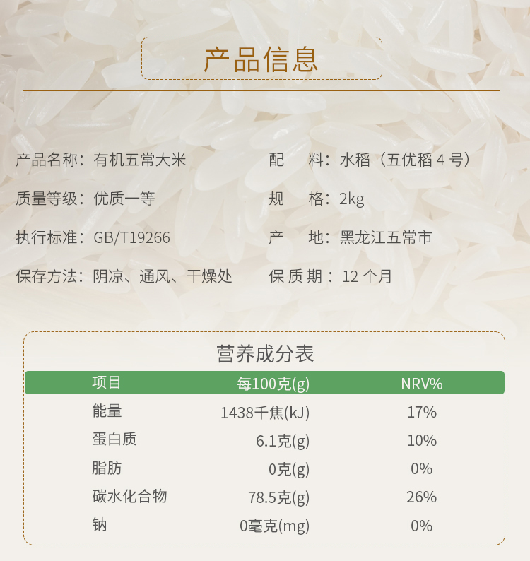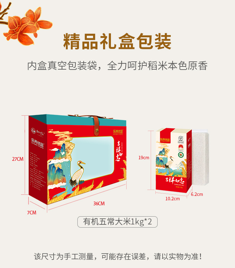 乐养优品有机五常大米礼盒(吉祥如意)2KG