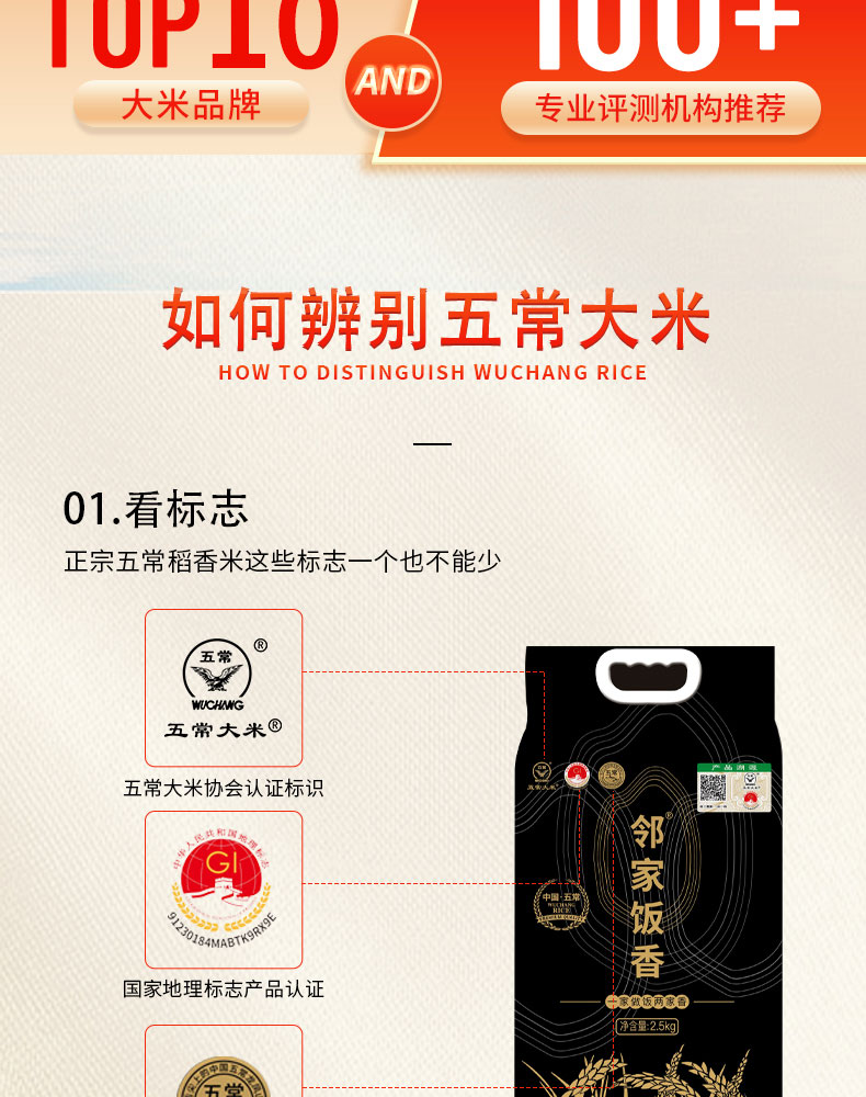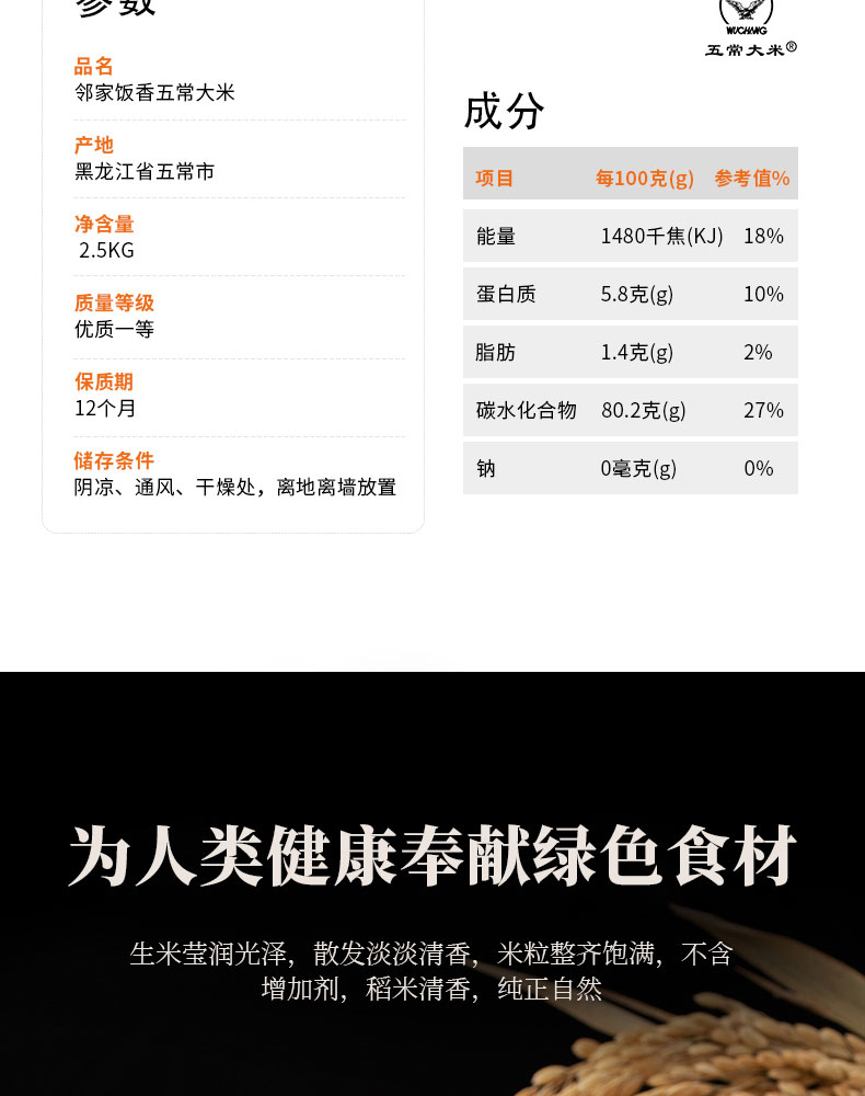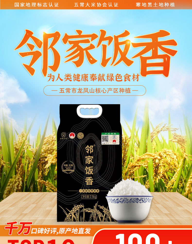 邻家饭香 核心产区五常大米 2.5kg/袋 真空双层包装LJFX78