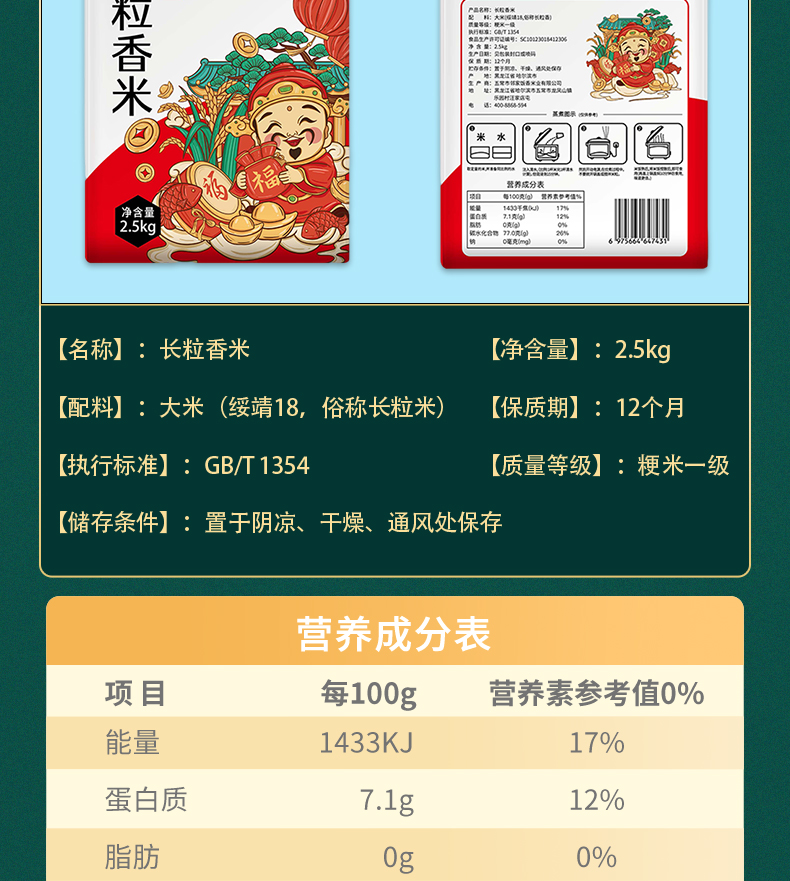 邻家饭香 东北大米 长粒香米 2.5kg/袋 真空双层包装 LJFX59
