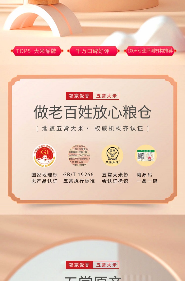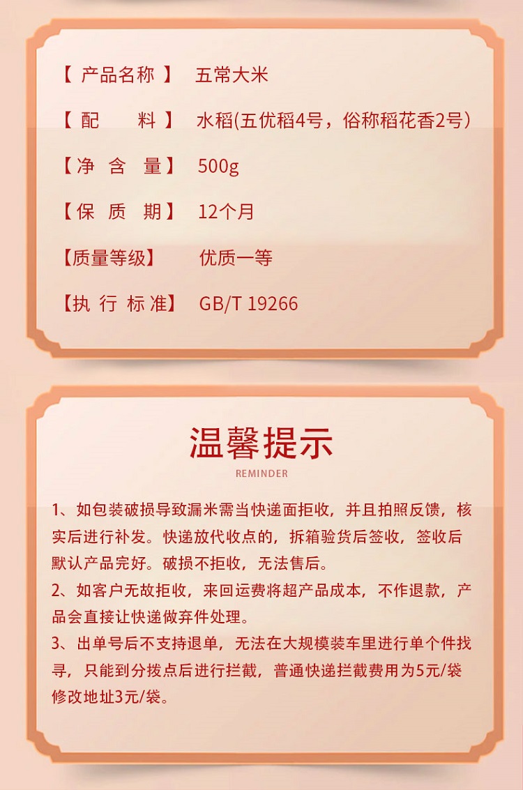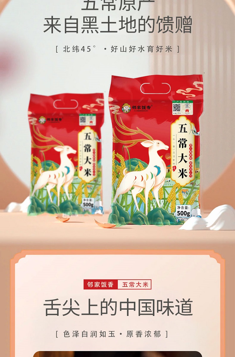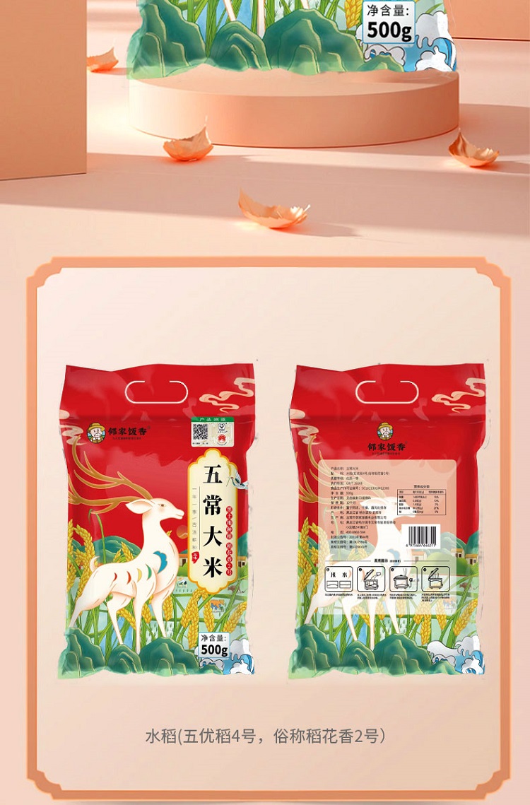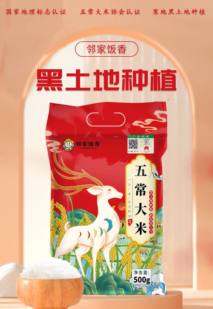 邻家饭香 二级产区五常大米 500g/袋 非真空包装 LJFX19-W