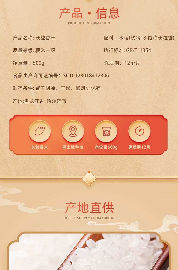 邻家饭香 东北大米 长粒香 500g/袋 非真空包装 LJFX13-C