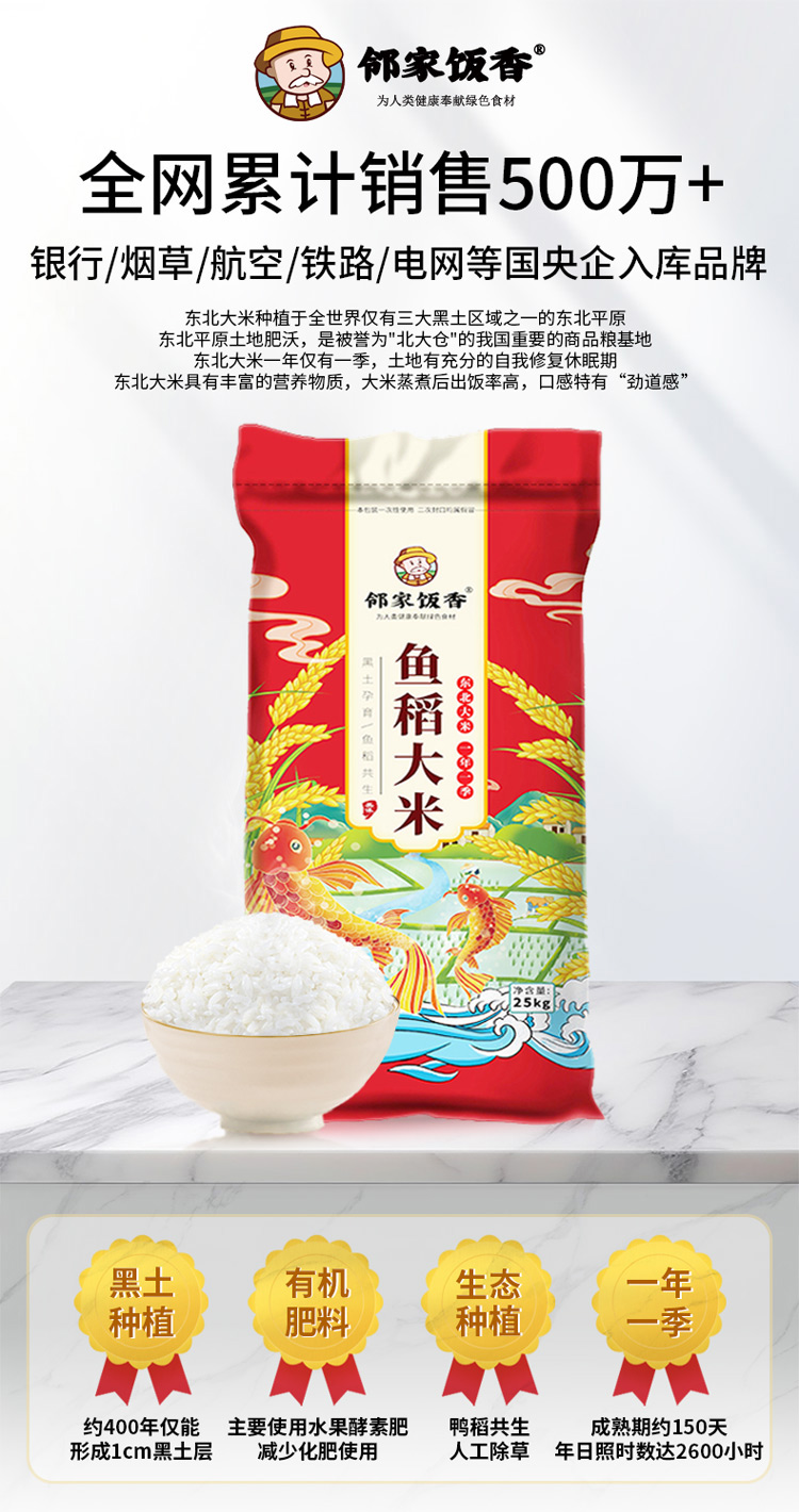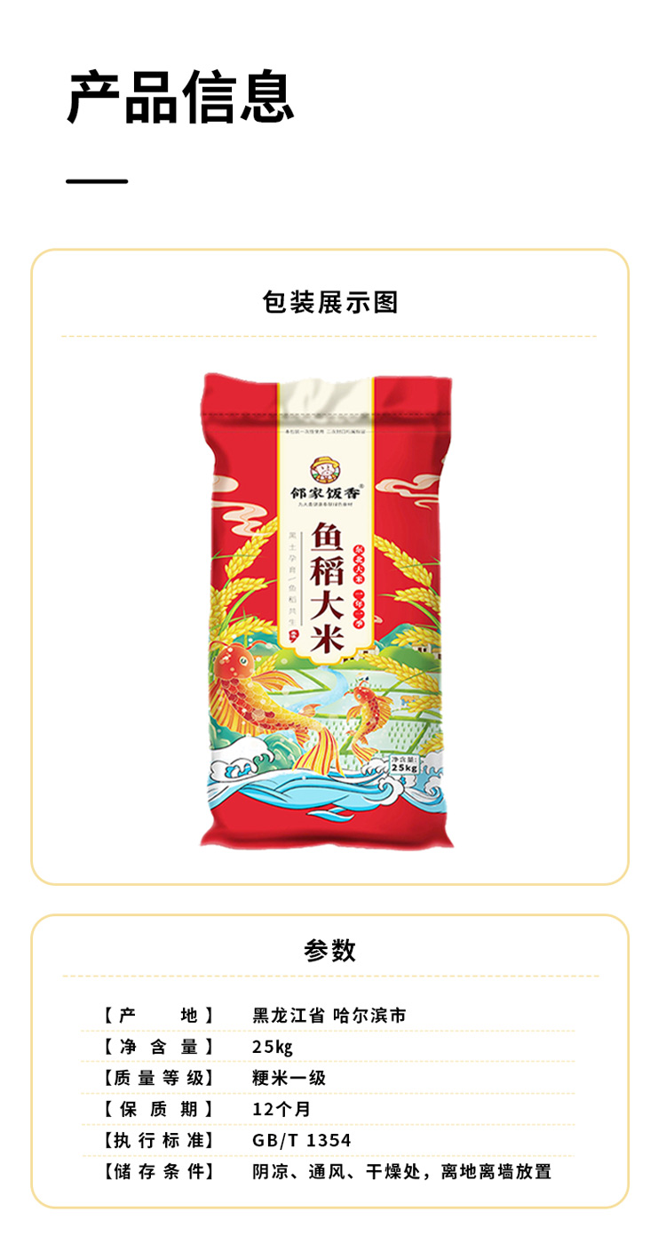 邻家饭香 东北大米 鱼稻大米 25kg/袋 非真空包装 ZCHA257