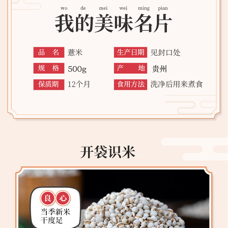 鲜山叔 贵州薏米1.5kg/1袋