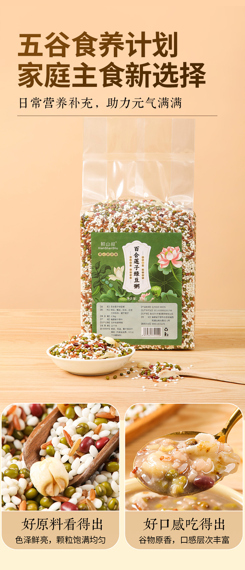 鲜山叔 百合莲子绿豆粥1.5kg/1袋