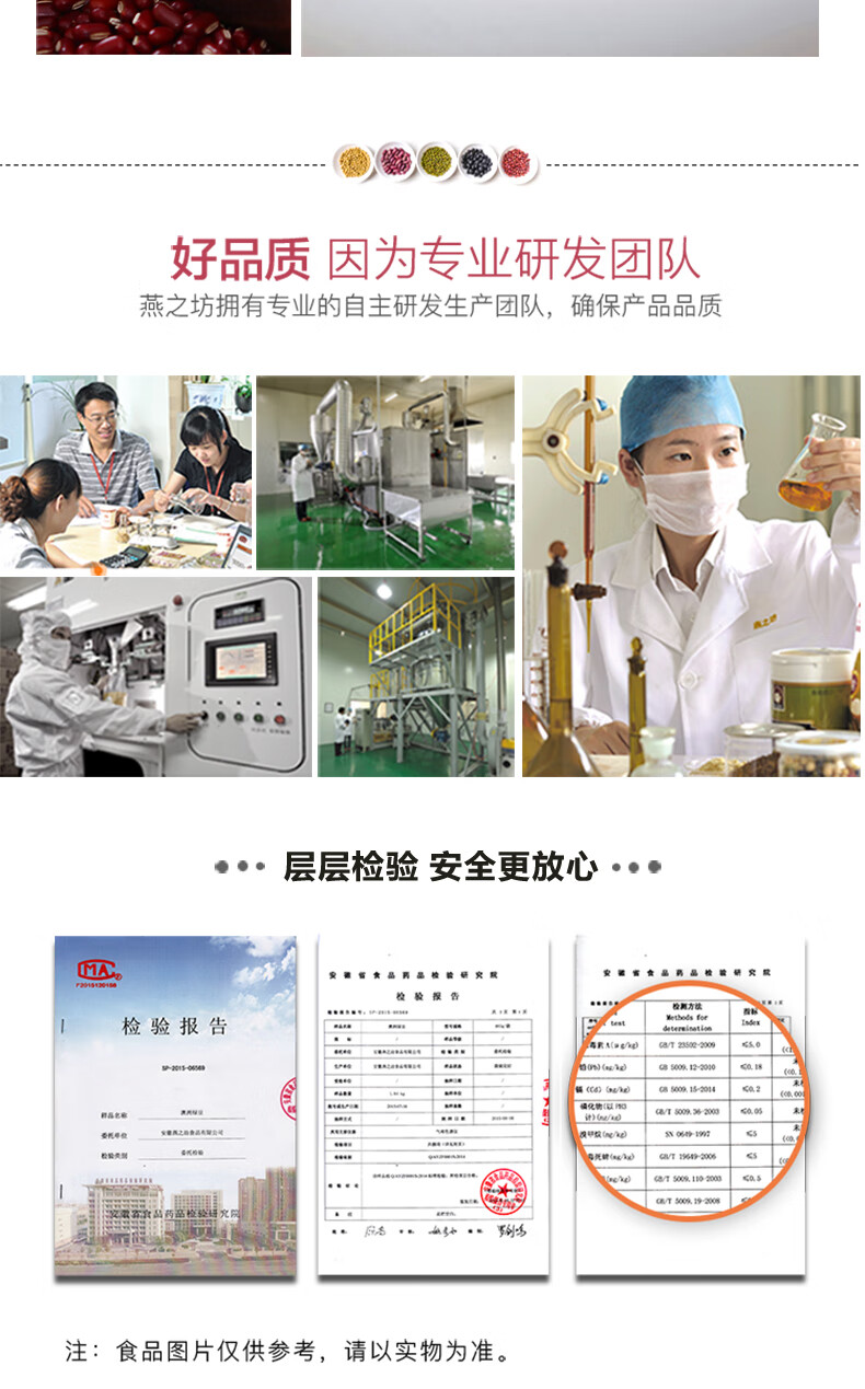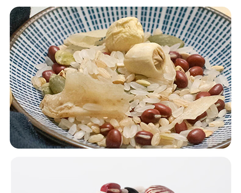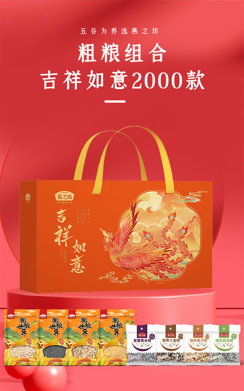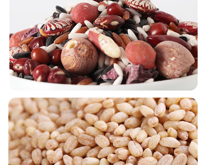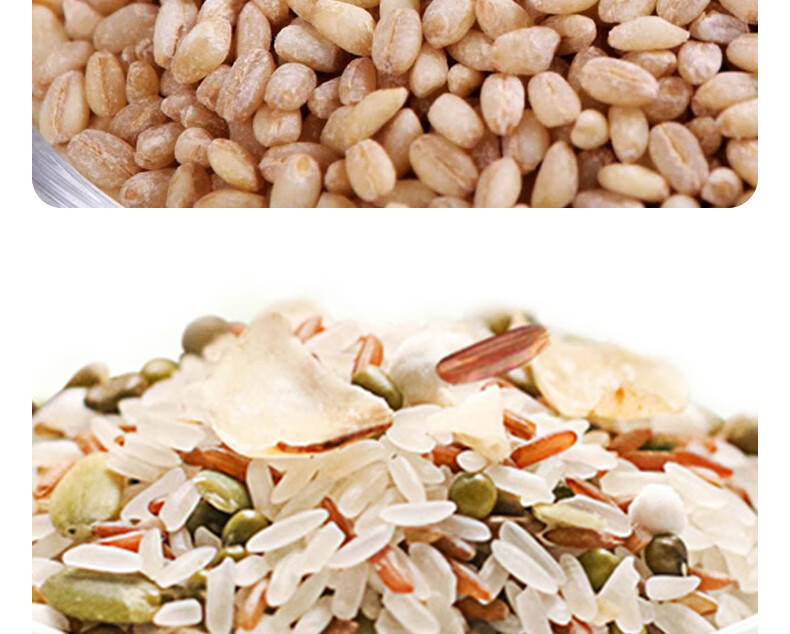 小麦仁350g、黑米350g、糙米350g、小玉米渣350g、绿豆百合粥150g、八宝粥150g、紫薯黑米粥150g、糙米莲子粥150g