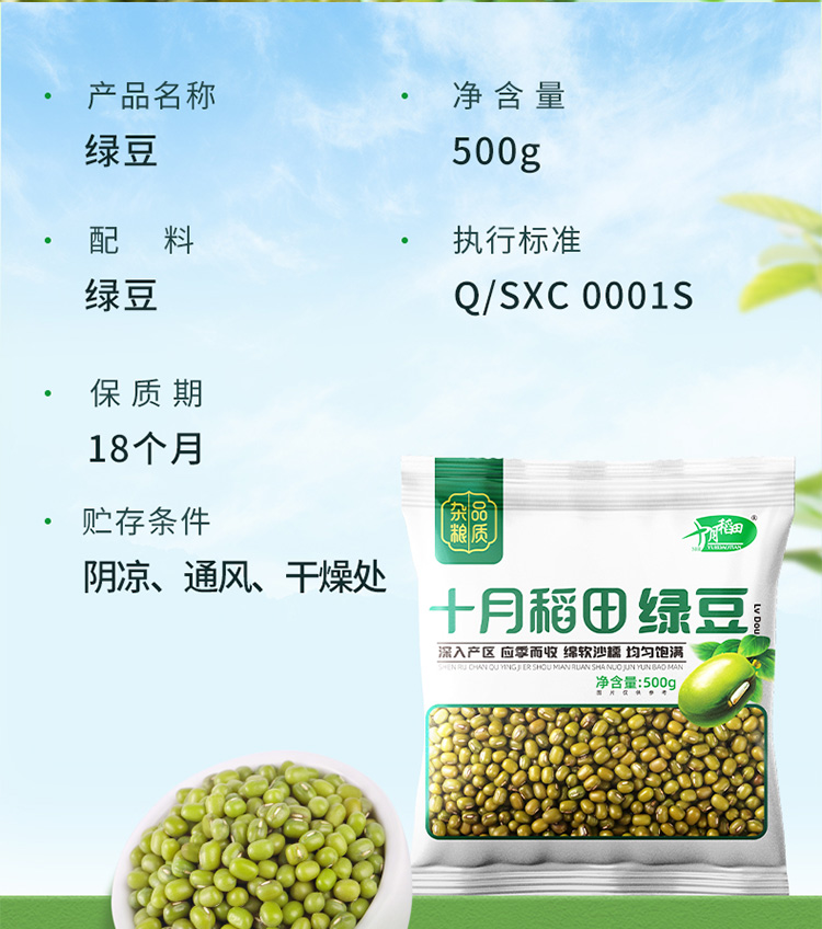 绿豆均匀饱满整齐度高,粒大皮薄易炖煮