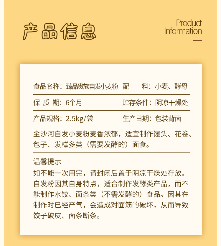 金沙河臻品贵族自发小麦粉2.5kg /袋(塑包)(X)202212130008