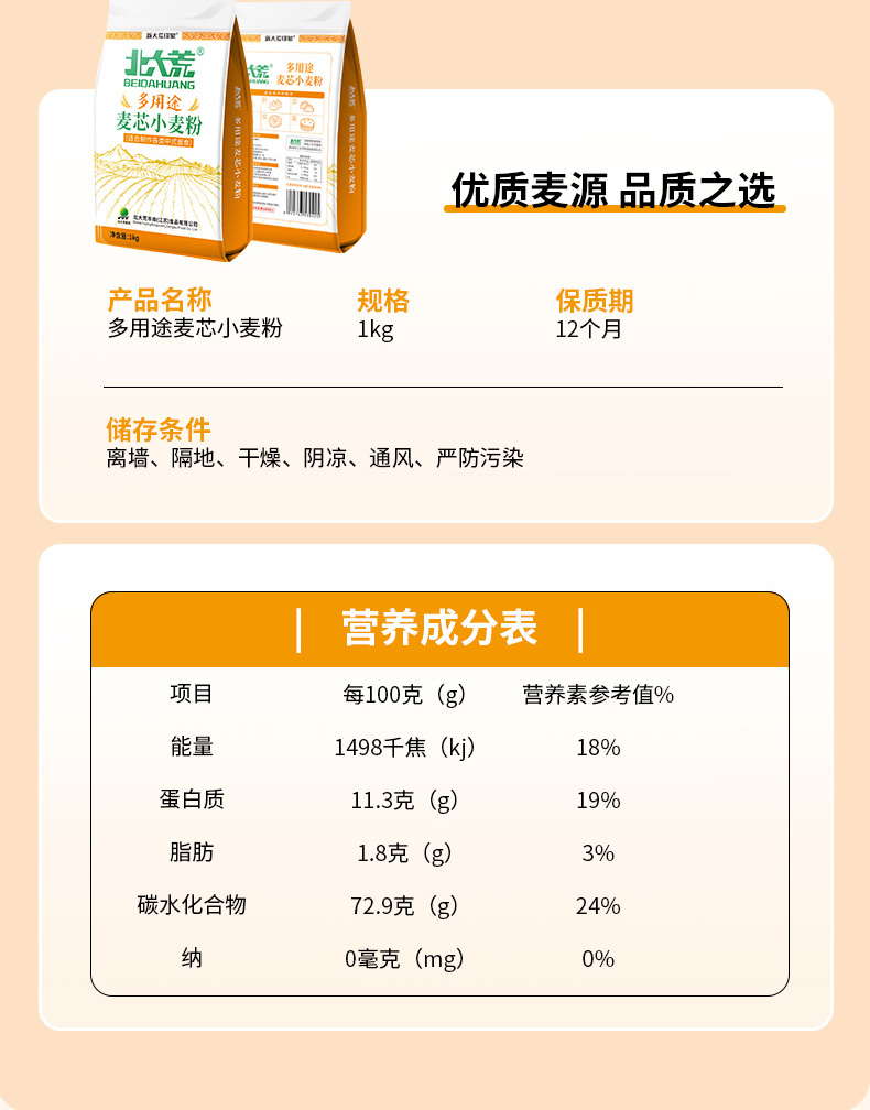 北大荒新大荒印象多用途麦芯粉1kg/2.5kg/5kg