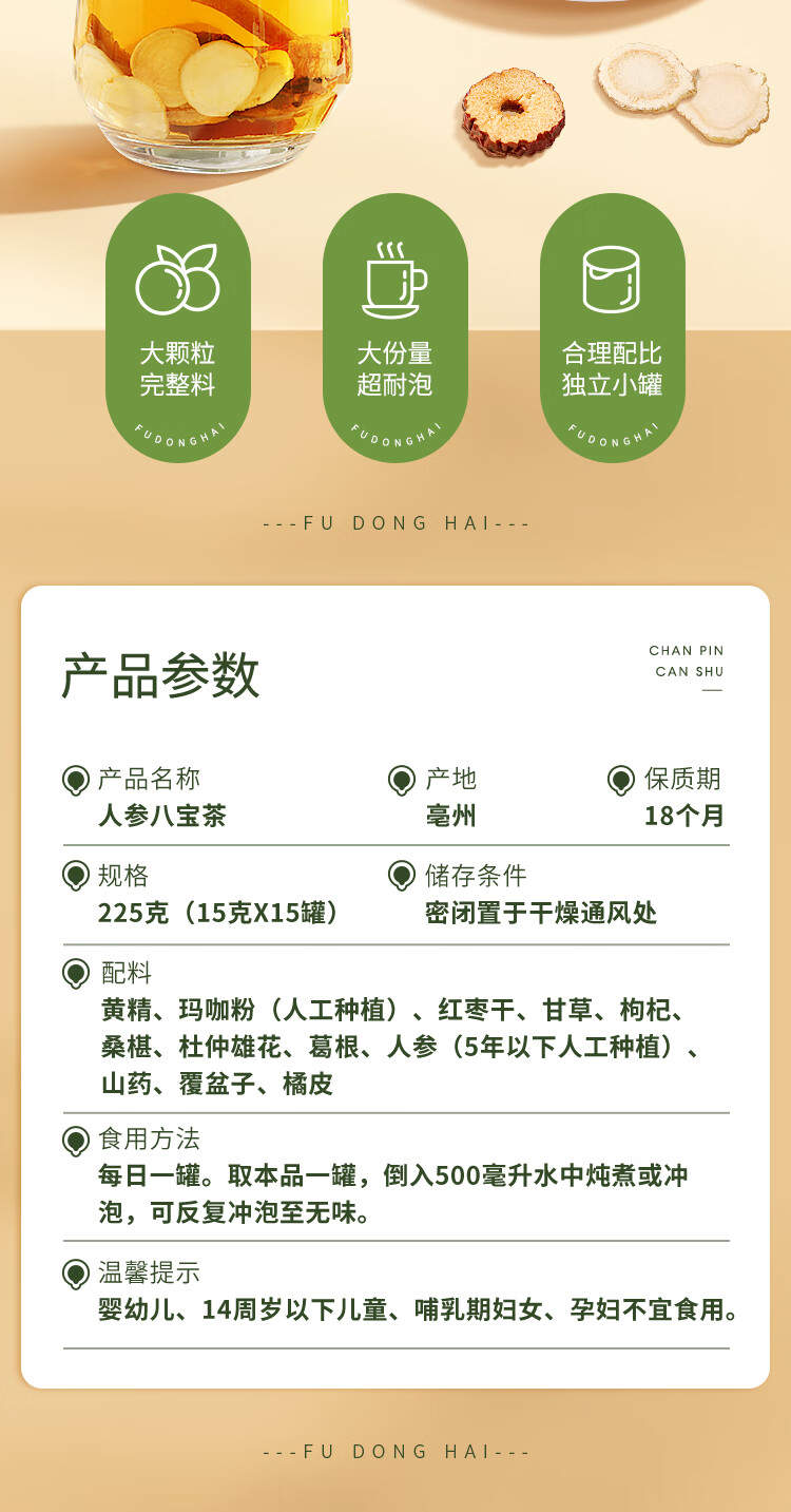 【福东海】人参八宝茶225克/盒(15克*15罐)(小罐茶) FDH02010207