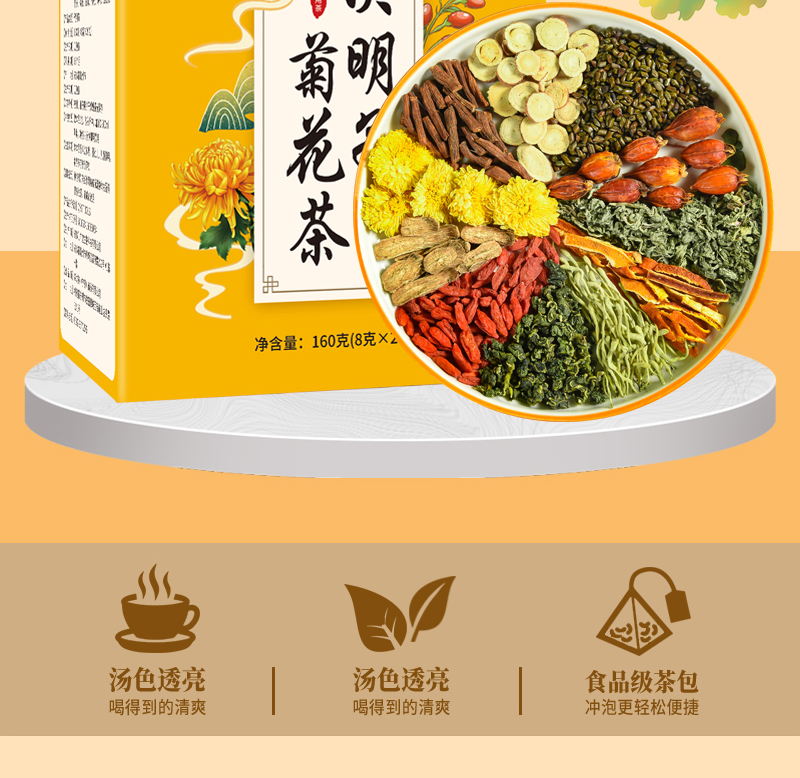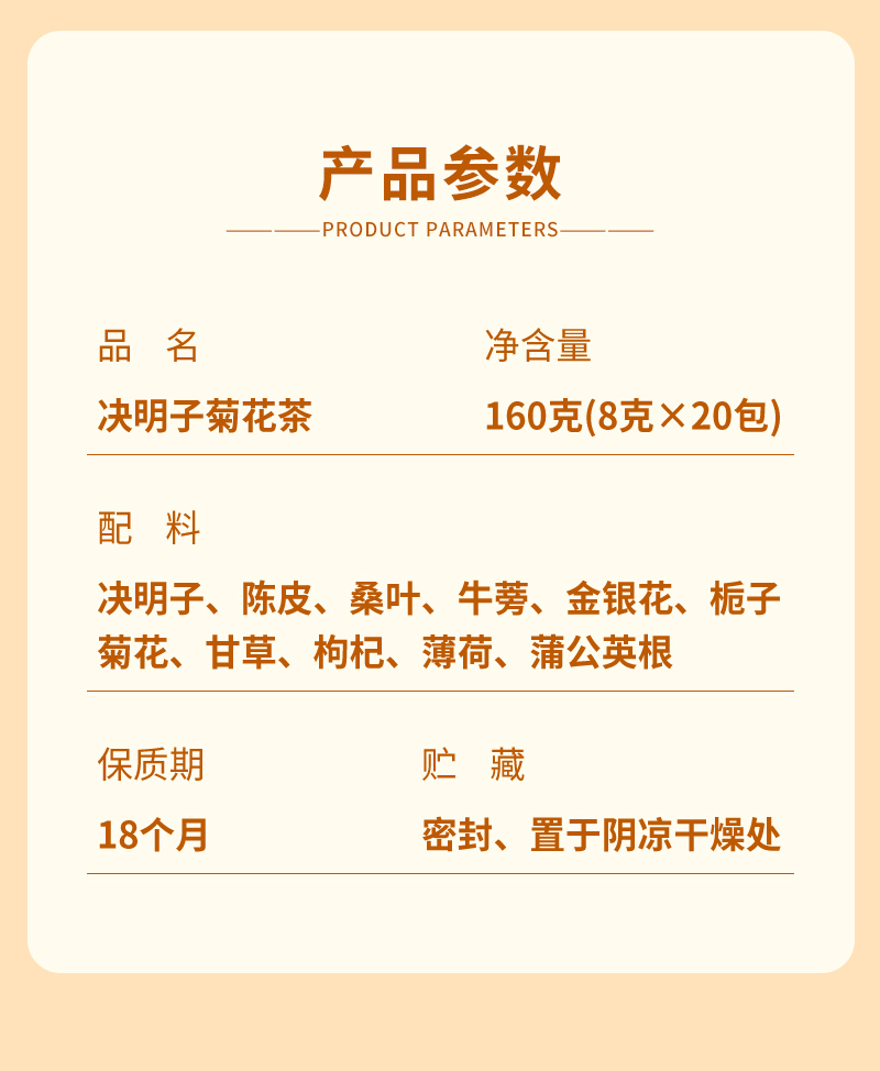 鲜山叔 决明子菊花茶160g/1盒(每盒8g*20袋)