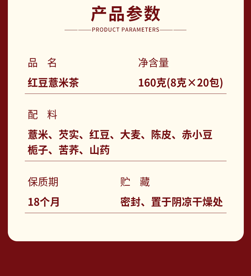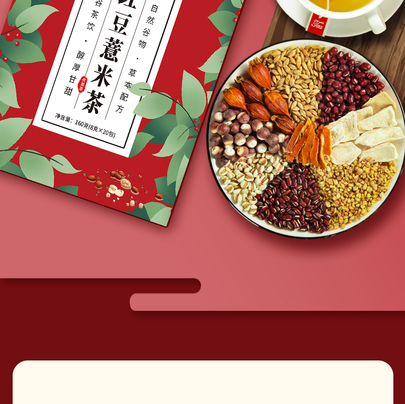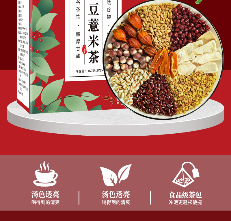 鲜山叔 红豆薏米茶160g/1盒(每盒8g*20袋)
